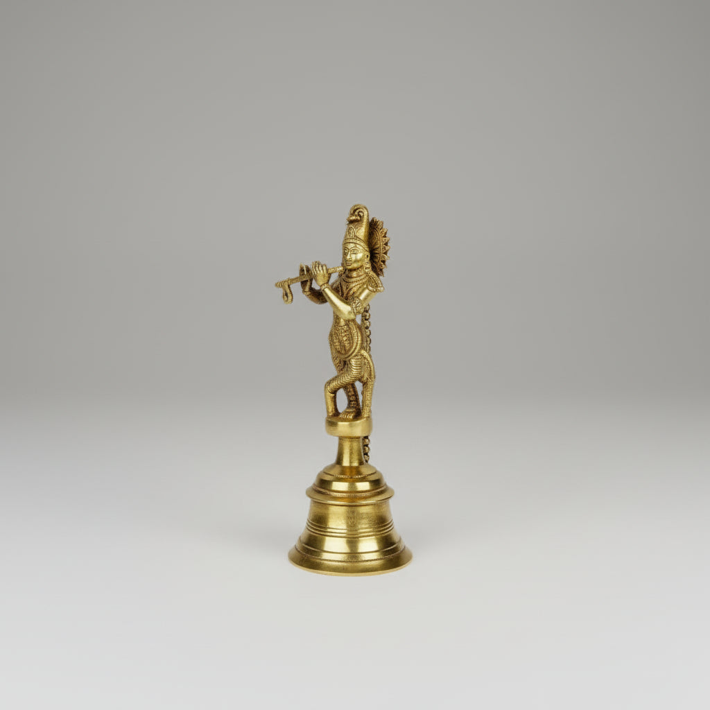 Brass Krishna Hanging Bell Handcrafted Temple Décor Auspicious Pooja & Home Accent