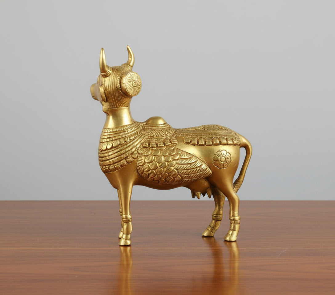 Brass Kamdhenu Cow & Calf Idol – Sacred Vastu Figurine for Pooja & Home Décor