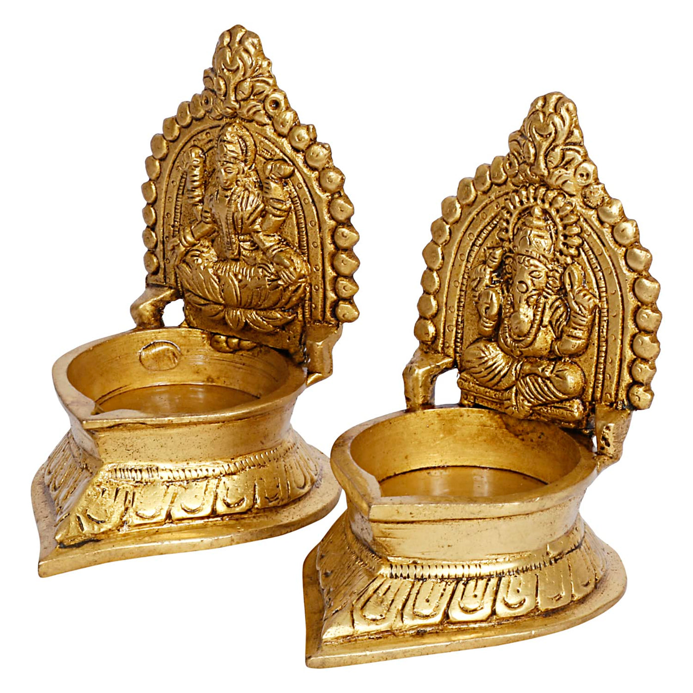 Brass Lakshmi Ganesh Pair Diya for Pooja/ Diwali/ Gift Item