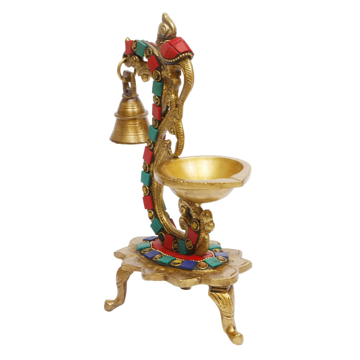 Brass Multicolor Bird Traditional Hanging Bell Diya Oil Lamp Stand Diwali Puja