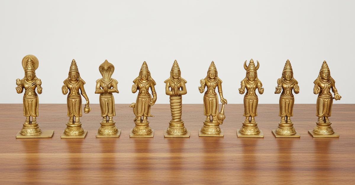 Brass Navgrah Statue on Stand – 9 Planet Deities Idol for Home & Office Temple
