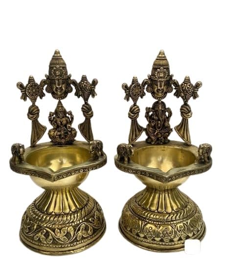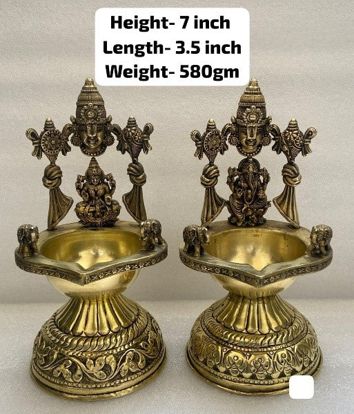 Brass tirupati Balaji Lakshmi ji and Ganesh ji Diya Pair for Home Temple/Gift Item