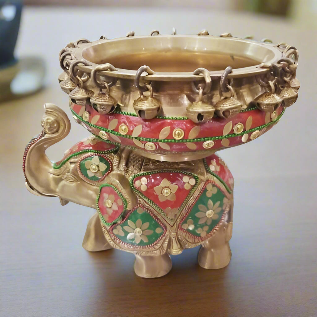 brass with stone work ghungru elephant bowl urli home decor/gift item/flower decoration