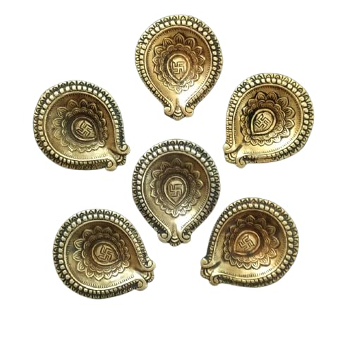 Collection of 6 Brass Oil Lamps with an Exquisite Lotus Design for Home décor/ Diwali décor