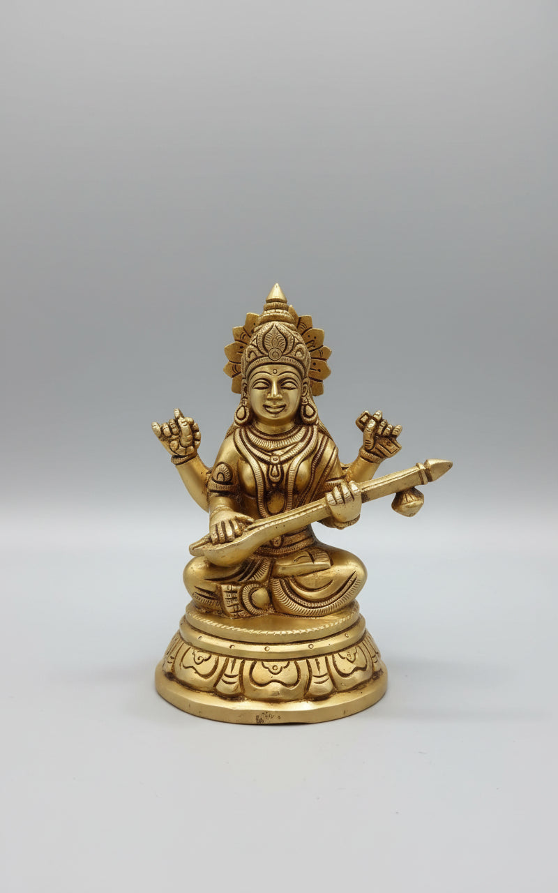 Handcrafted Brass Saraswati Idol – Goddess of Wisdom, Music & Learning