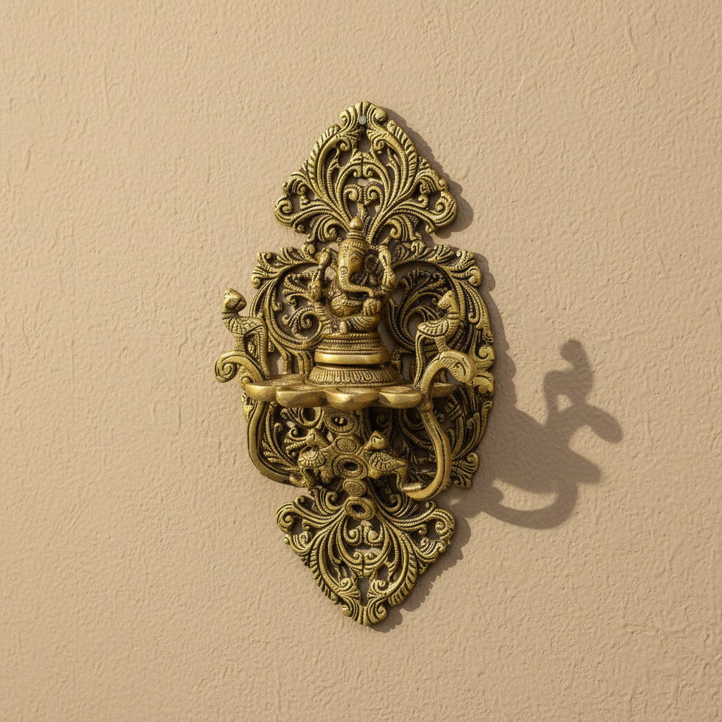 Brass Ganesh Wall Diya (4 diyas) Wall Hanging for Home décor/Temple/Gift Item