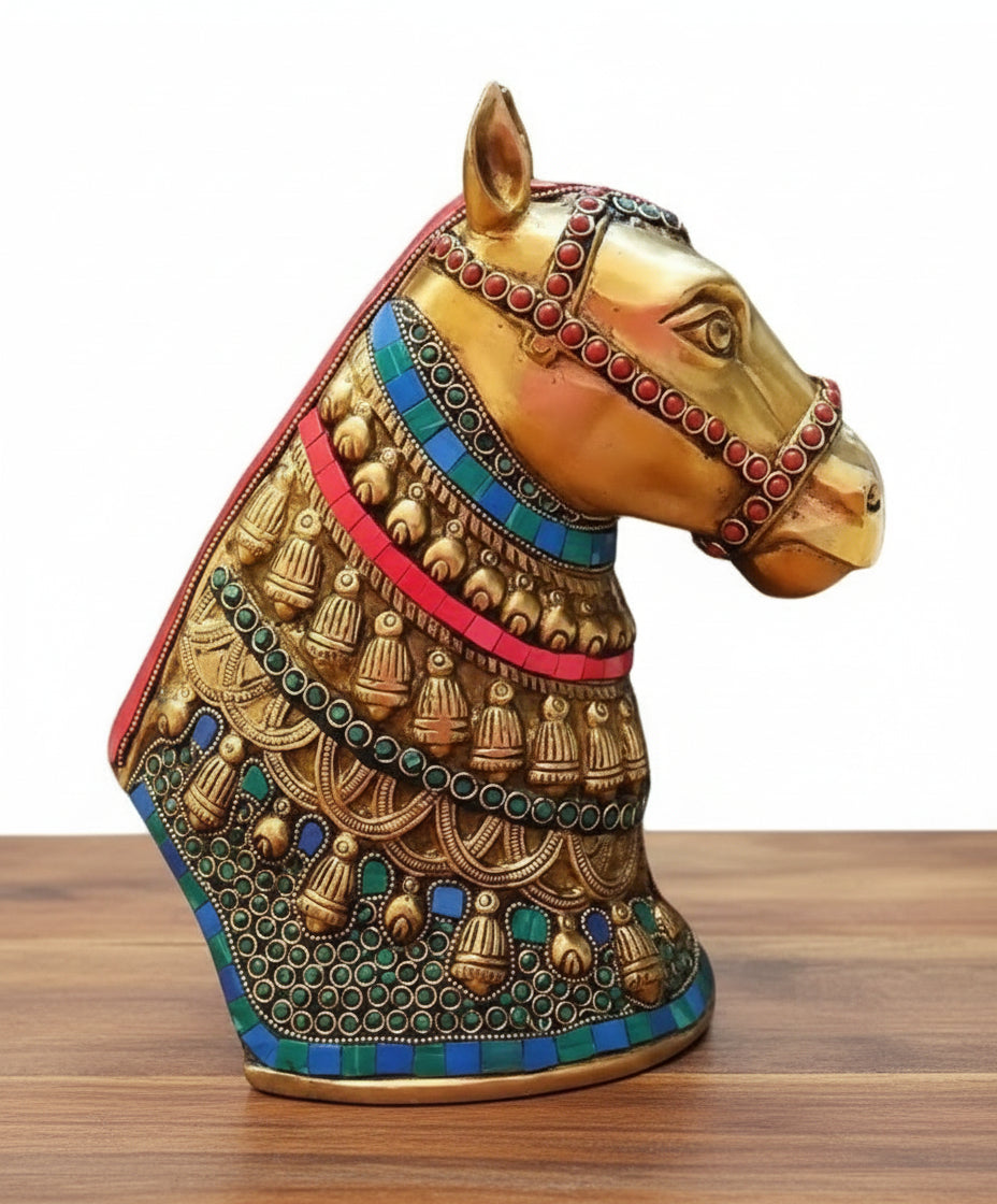 Brass with Multicolor Fully Carved Horse Statue/showpiece/Gift Item