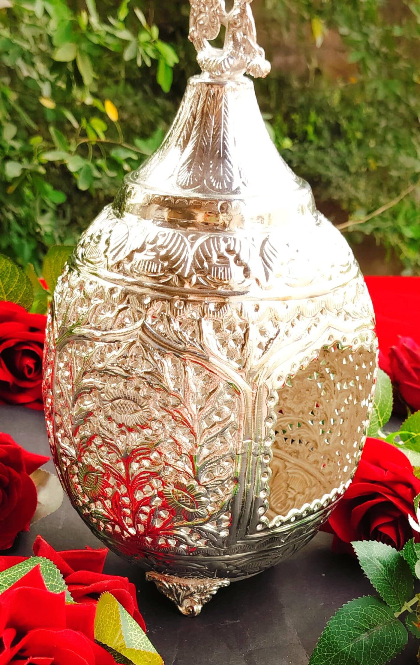 German silver elephant plate with 6 flower bowl with stand for diwali, serving dry fruits, snacks tray