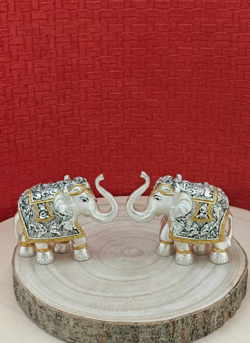 Silver-Coated Resin Elephant Pair – Antique Finish Decorative Set for Auspicious Gifting & Home Décor