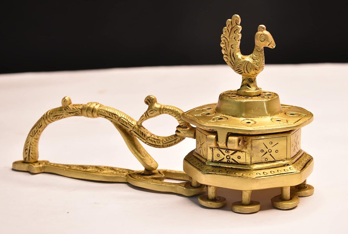 Dhoop Dani Brass Peacock with Handle Incense Burner Peacock Dhoop Dani