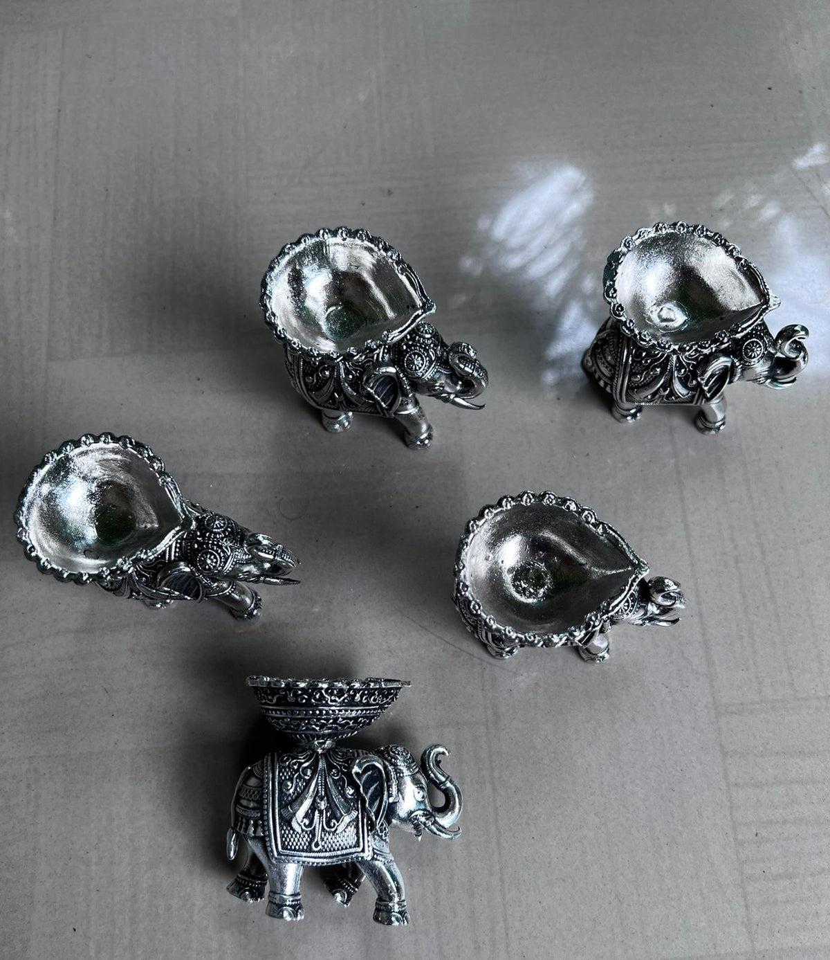 german silver antique finish set of 5 elephant diya for home decor