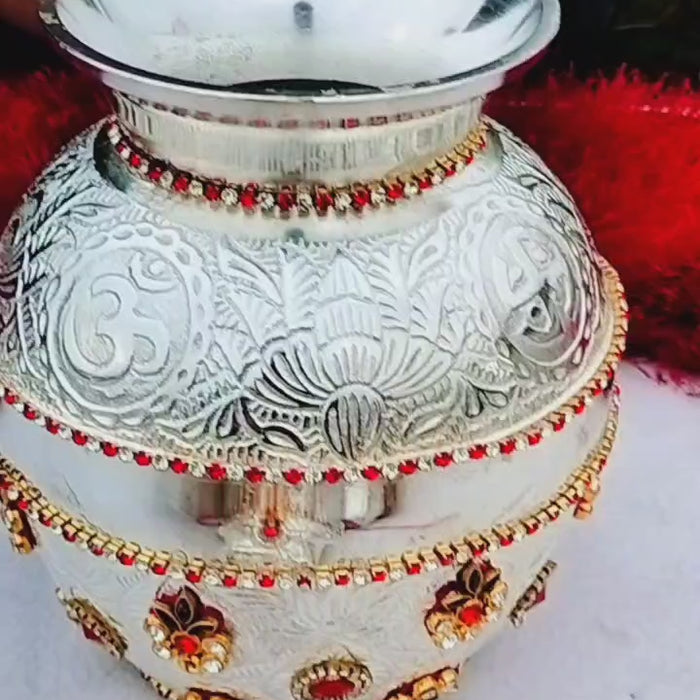 German silver stone work kalasha with Laxmi face combo for varalakshmi pooja/ housewarming/ diwali