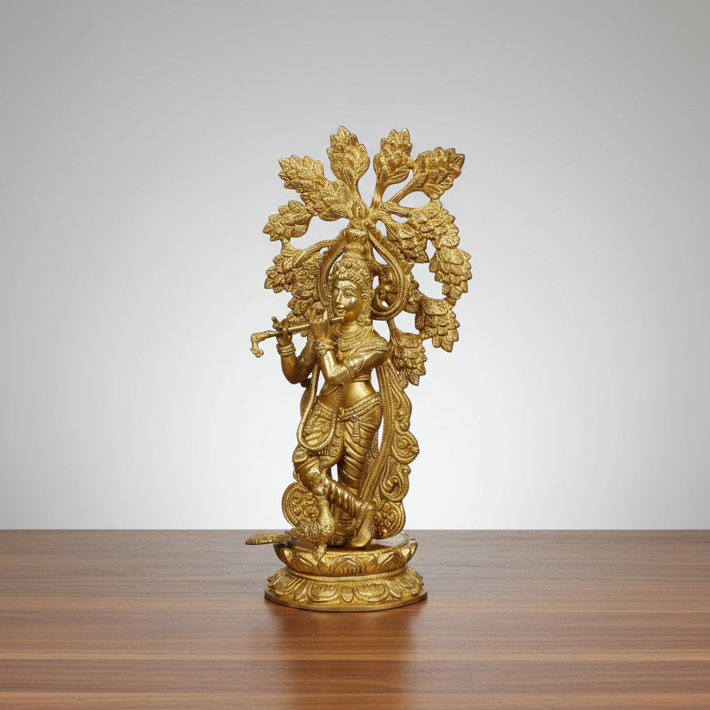Brass Krishan Playing Flute with Peacock Under The Tree Statue/Idol/Gift/Home Decor/stue for Temple
