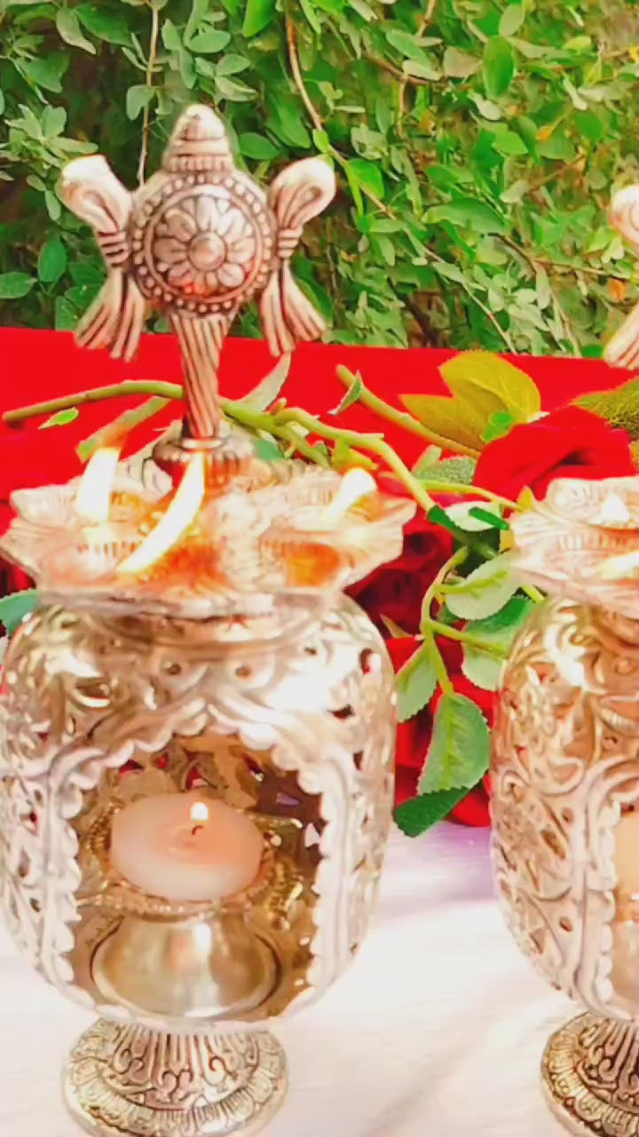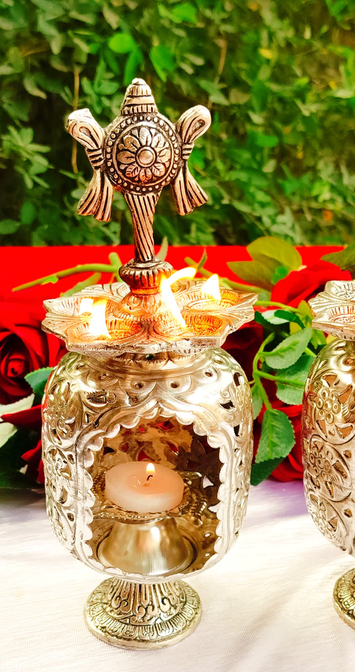 German Silver Antique Finish Panchmukhi shanku Chakra Diya Pair
