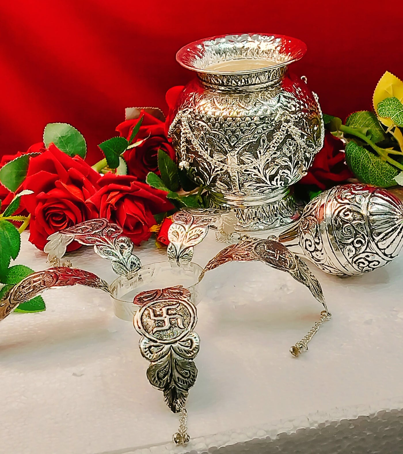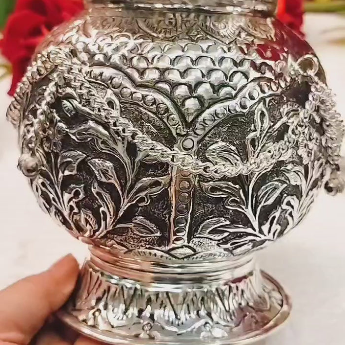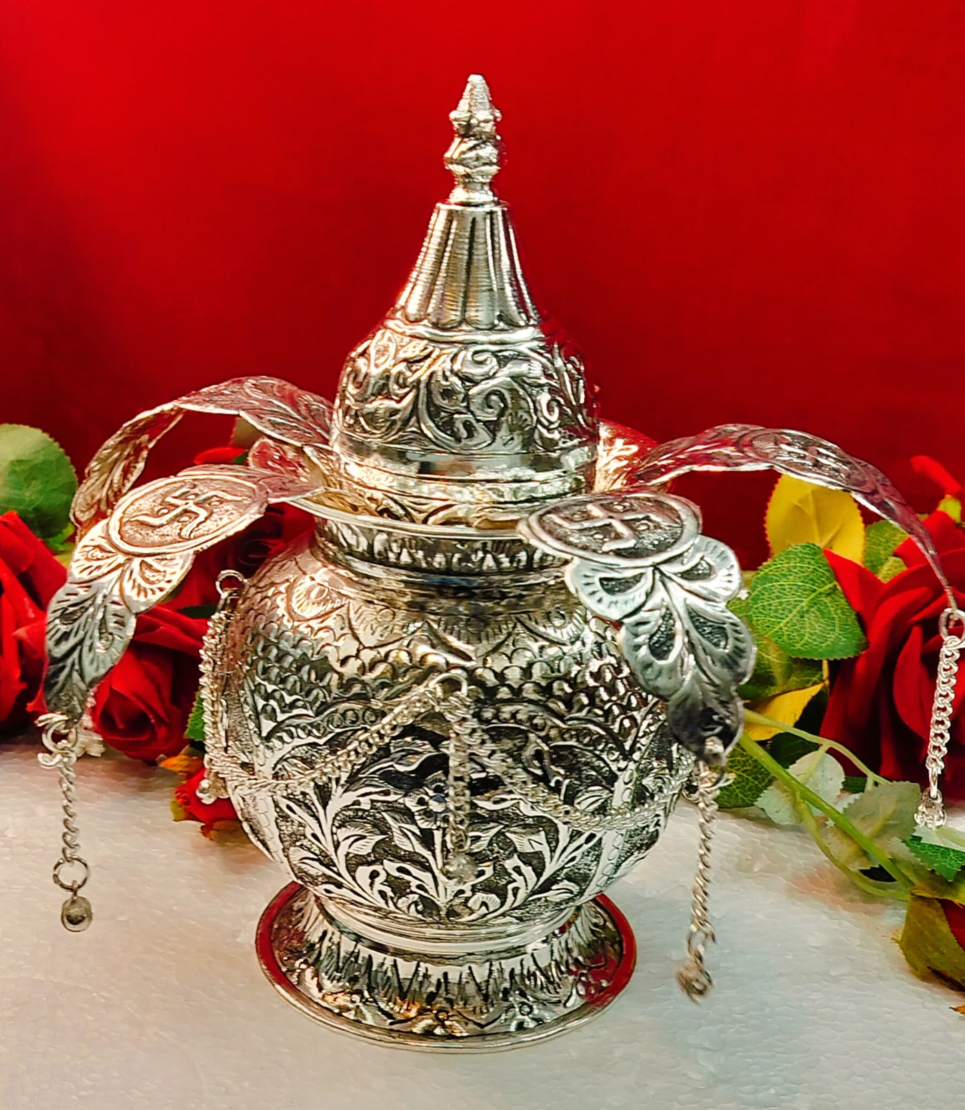 German Silver Fully Carved Kalash with Leaf and Coconut