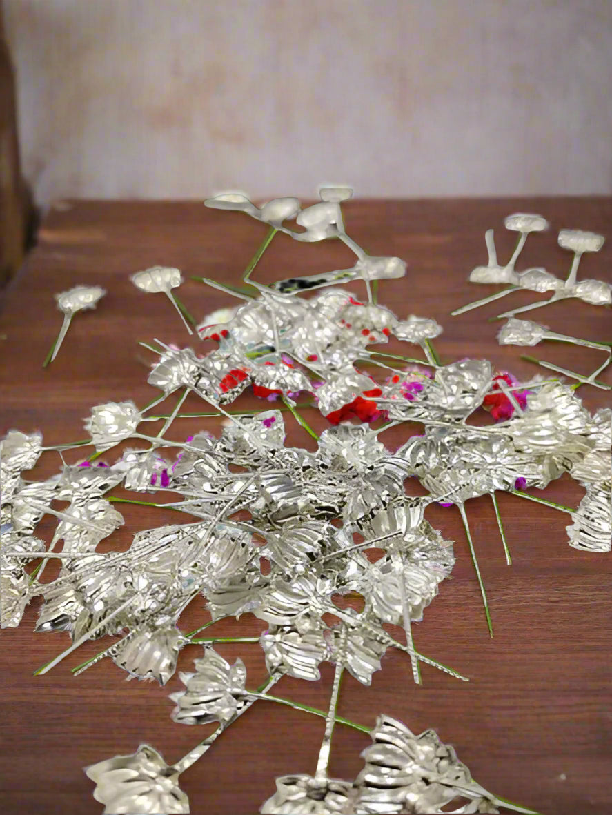 German Silver Set of 2 Packs Golden and Silver Washable 108 Lotus Kamala Flowers