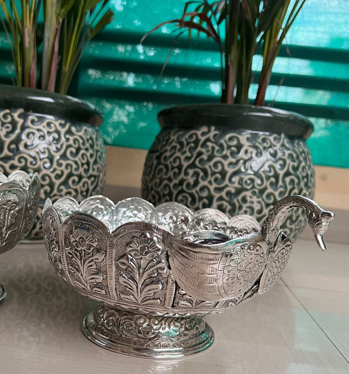 German Silver Swan Round Bowl with Stand for Snacks/Fruits/Home décor