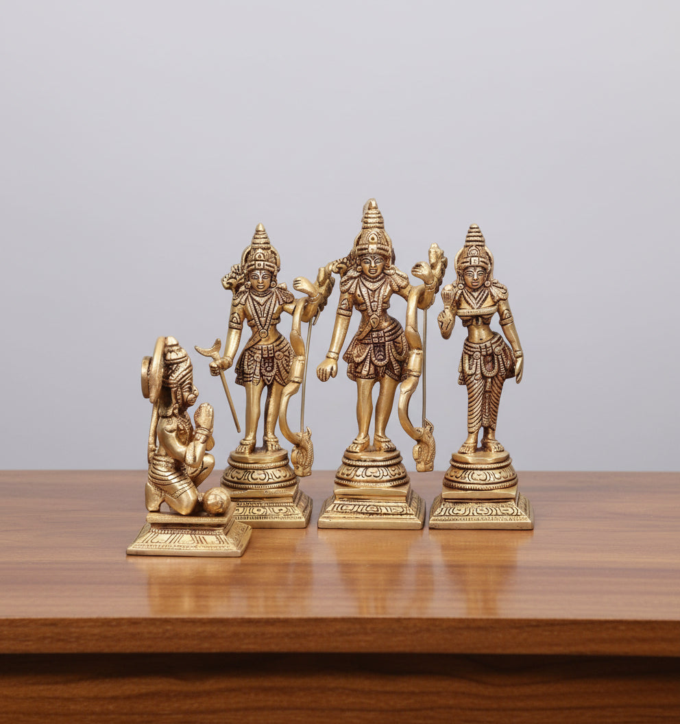 Brass Ram Darbar Idol Lord Ram, Sita, Lakshman & Hanuman Statue Handcrafted Hindu Temple & Home Décor