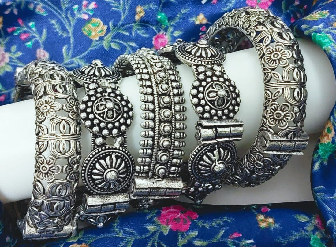 oxidized set of 5 openable bangle set for women.