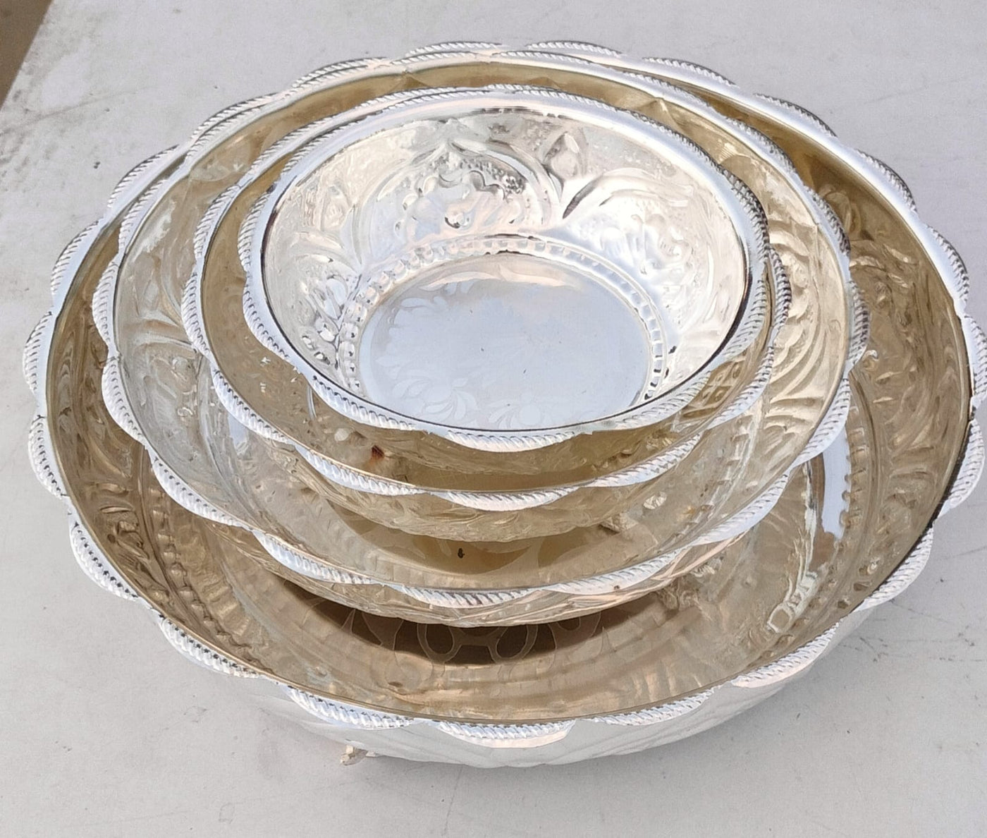 German silver nakkashi plate with elephant set of 4 for serving/ fruits/ snacks