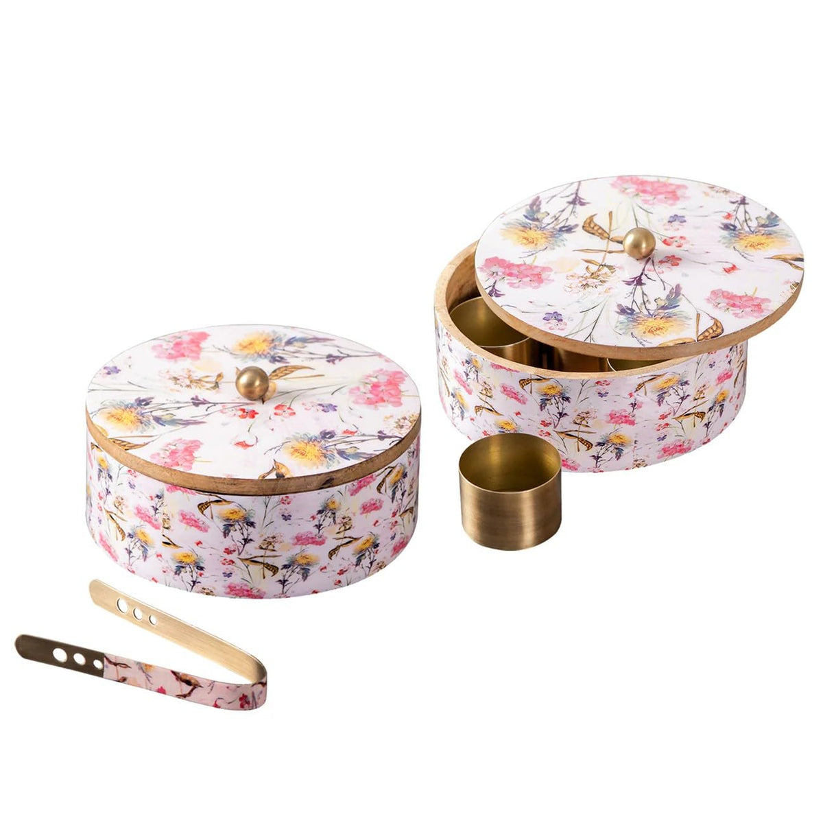 set of 2 wooden epoxy pink casserole with matching spice box for kitchen/gift item
