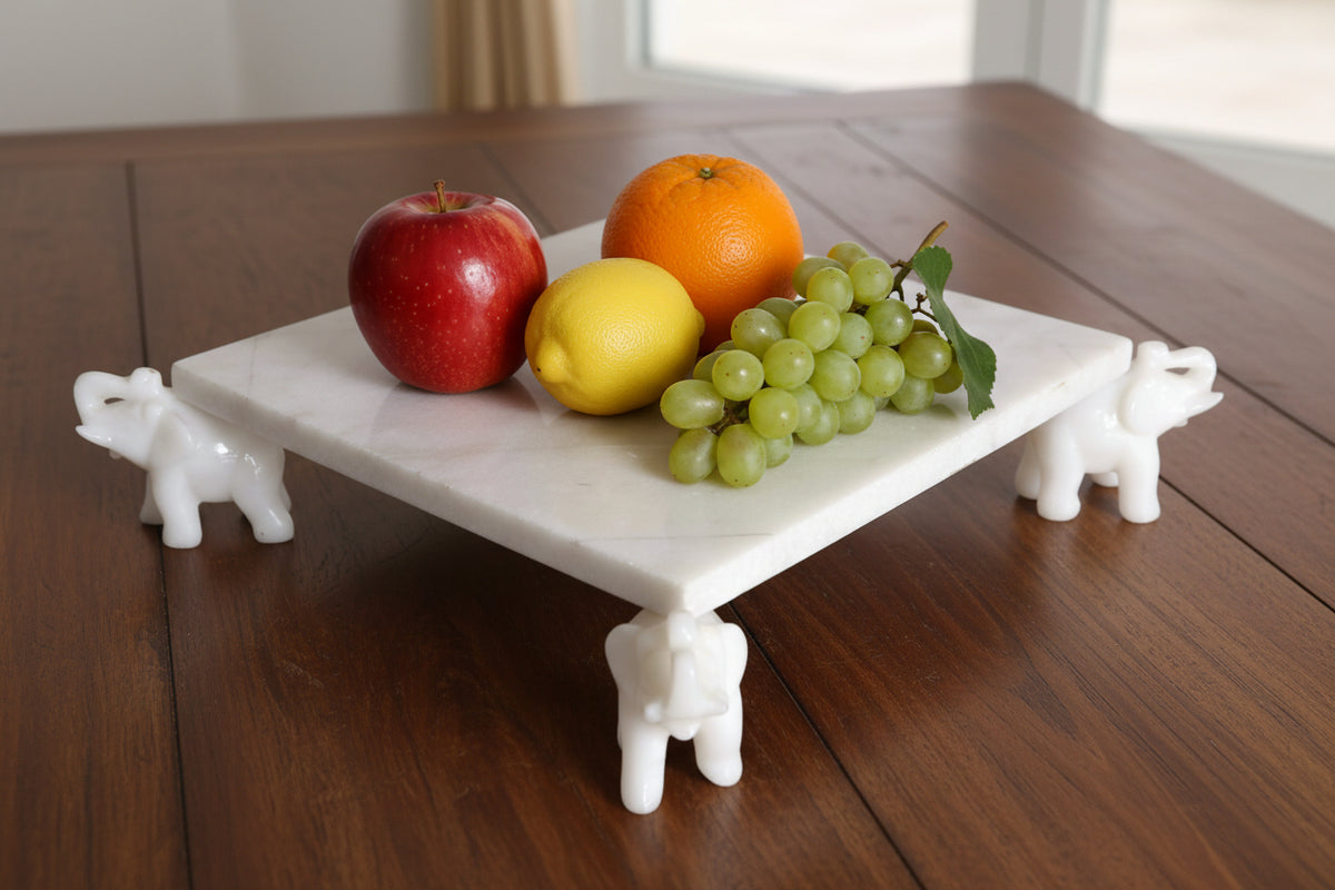 indiancraftsbykanika white marble fruit platter/snacks platter/stand/decorative piece/with elephant legs stand