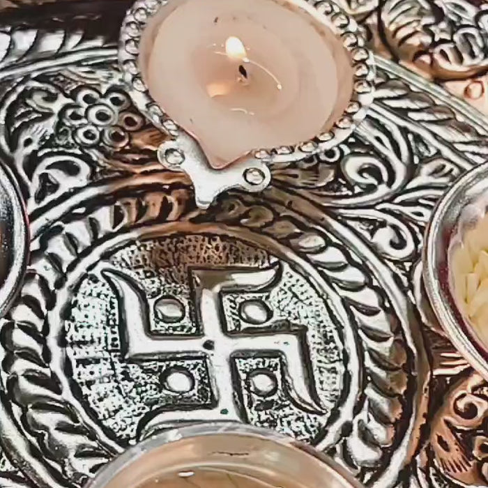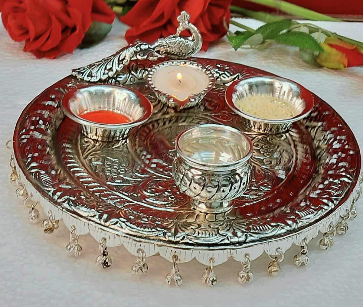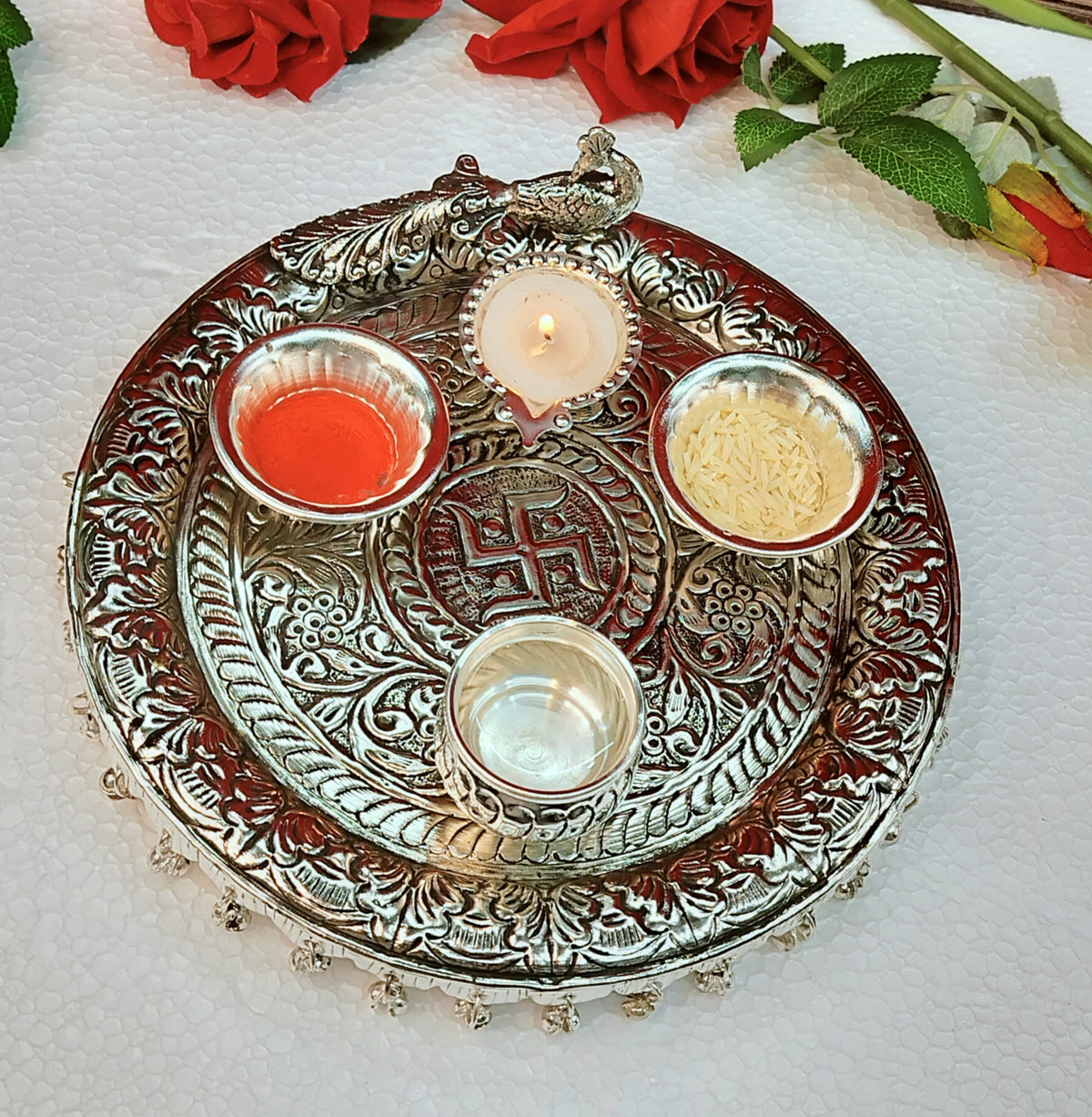 German silver peacock design Ghungaru Aarti thali set of 4 pieces
