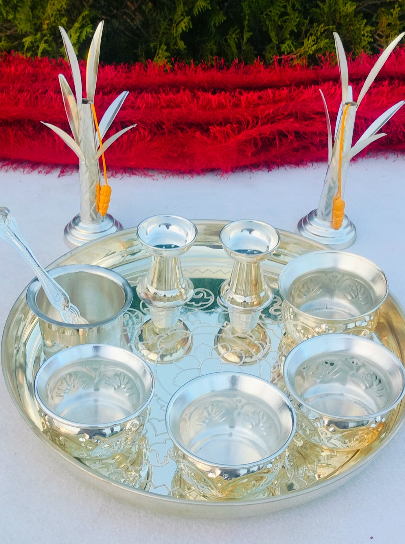 german silver pooja thali set of 11 pieces for housewarming/ diwali