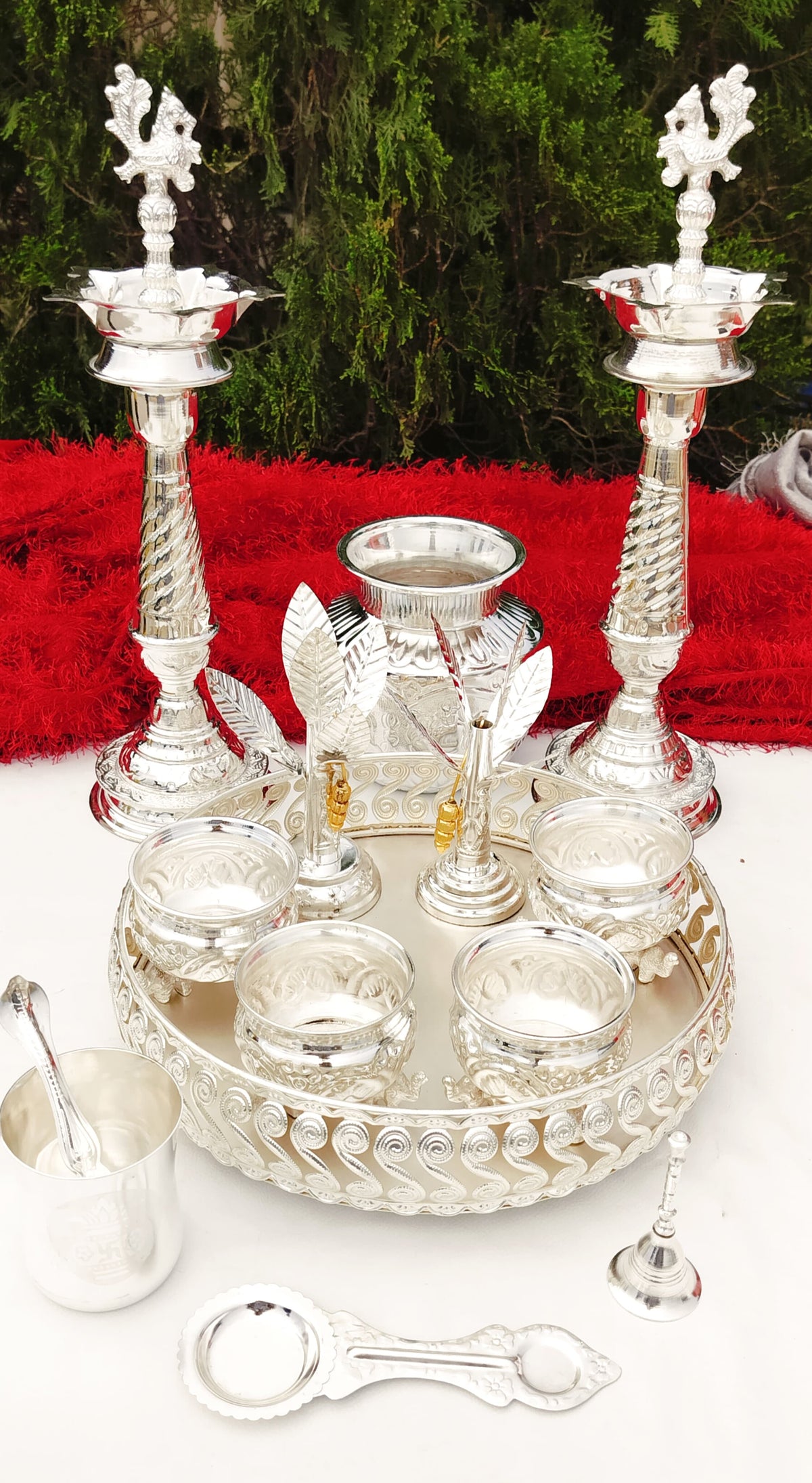 German silver Vara maha laxmi Pooja set/ housewarming/diwali set of 13 pieces