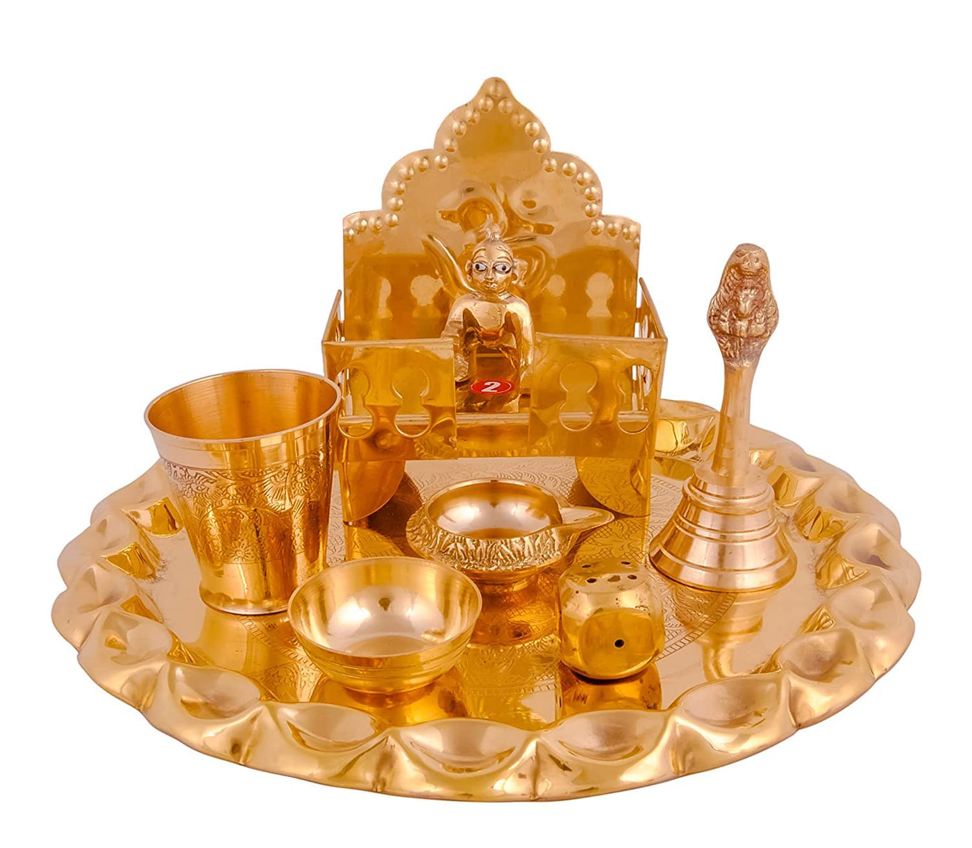 Brass Pooja thali Set with laddu Gopal and sing Hasan Set