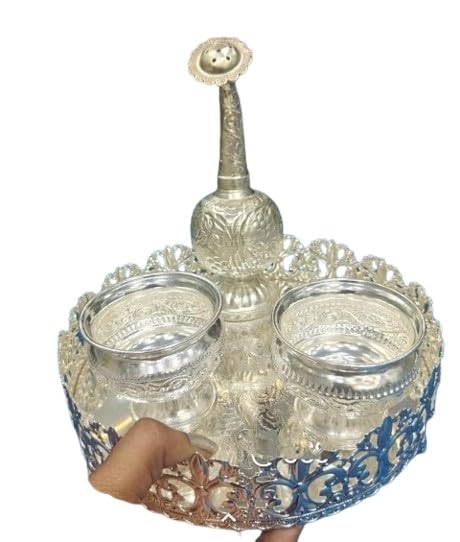 German silver combo flower cut pooja thali set of 4 pieces for Diwali/housewarming