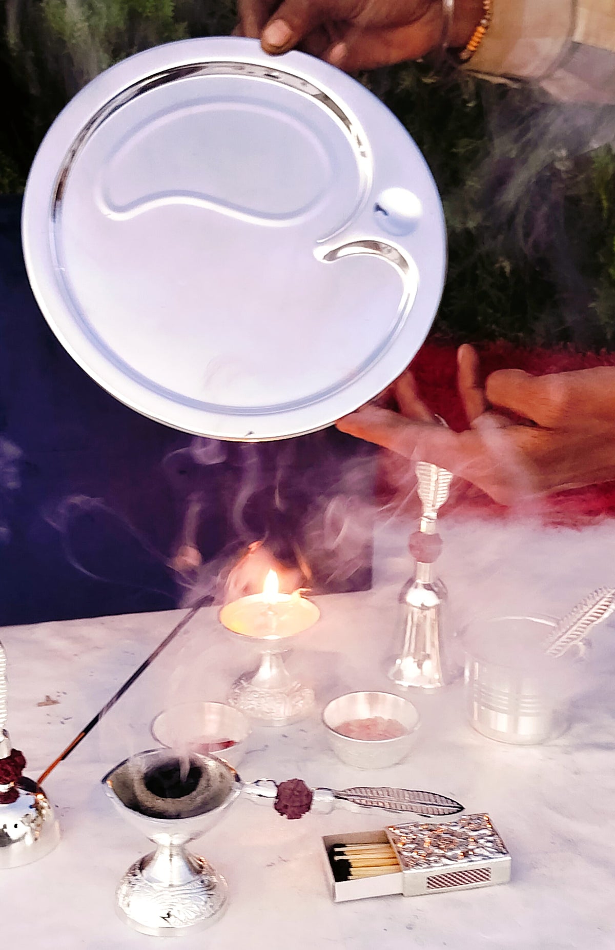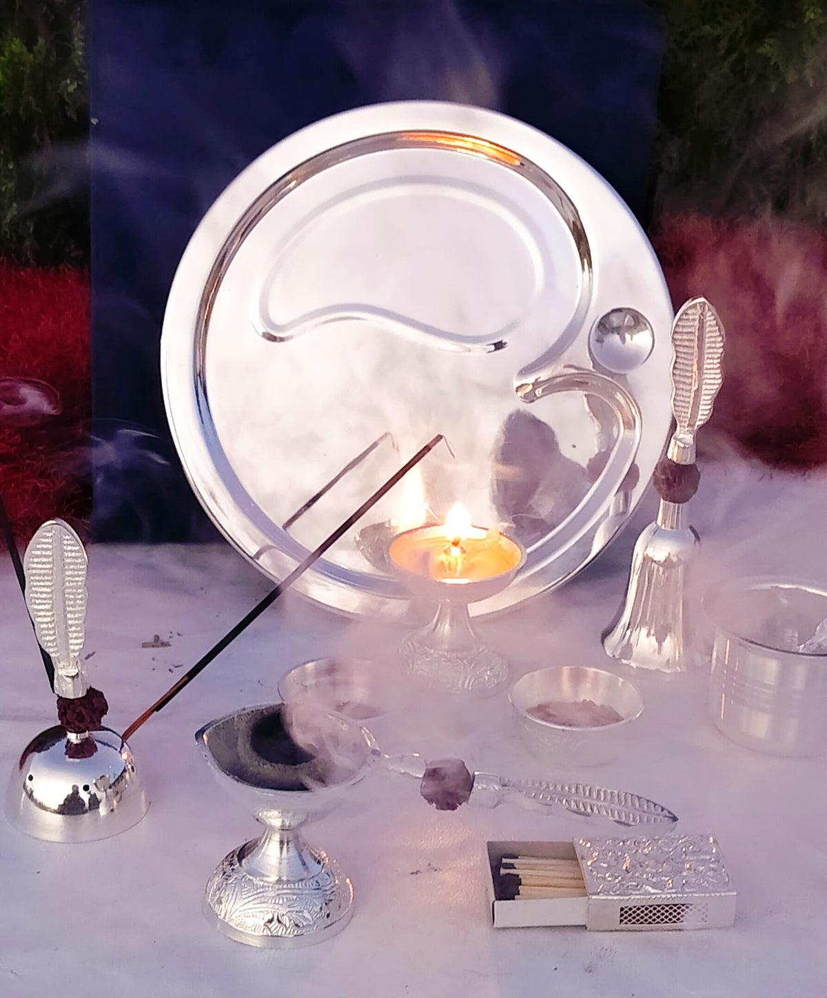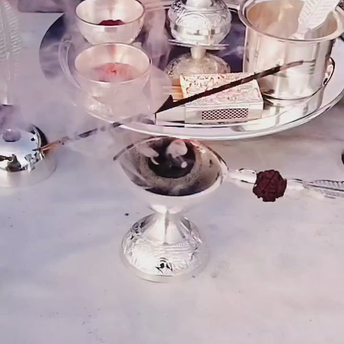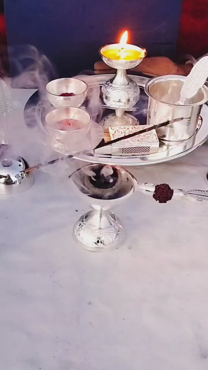 German Silver Rudraksha Pooja Set with om Design Thali