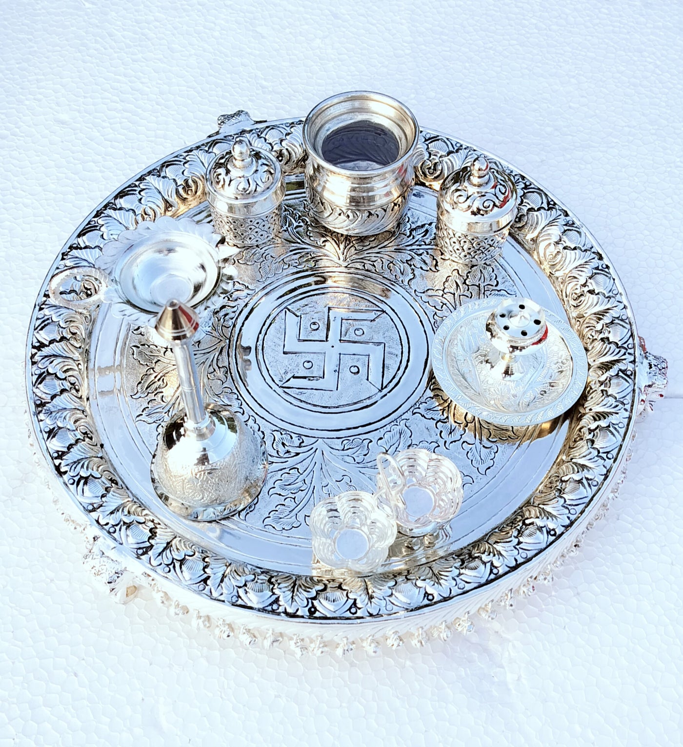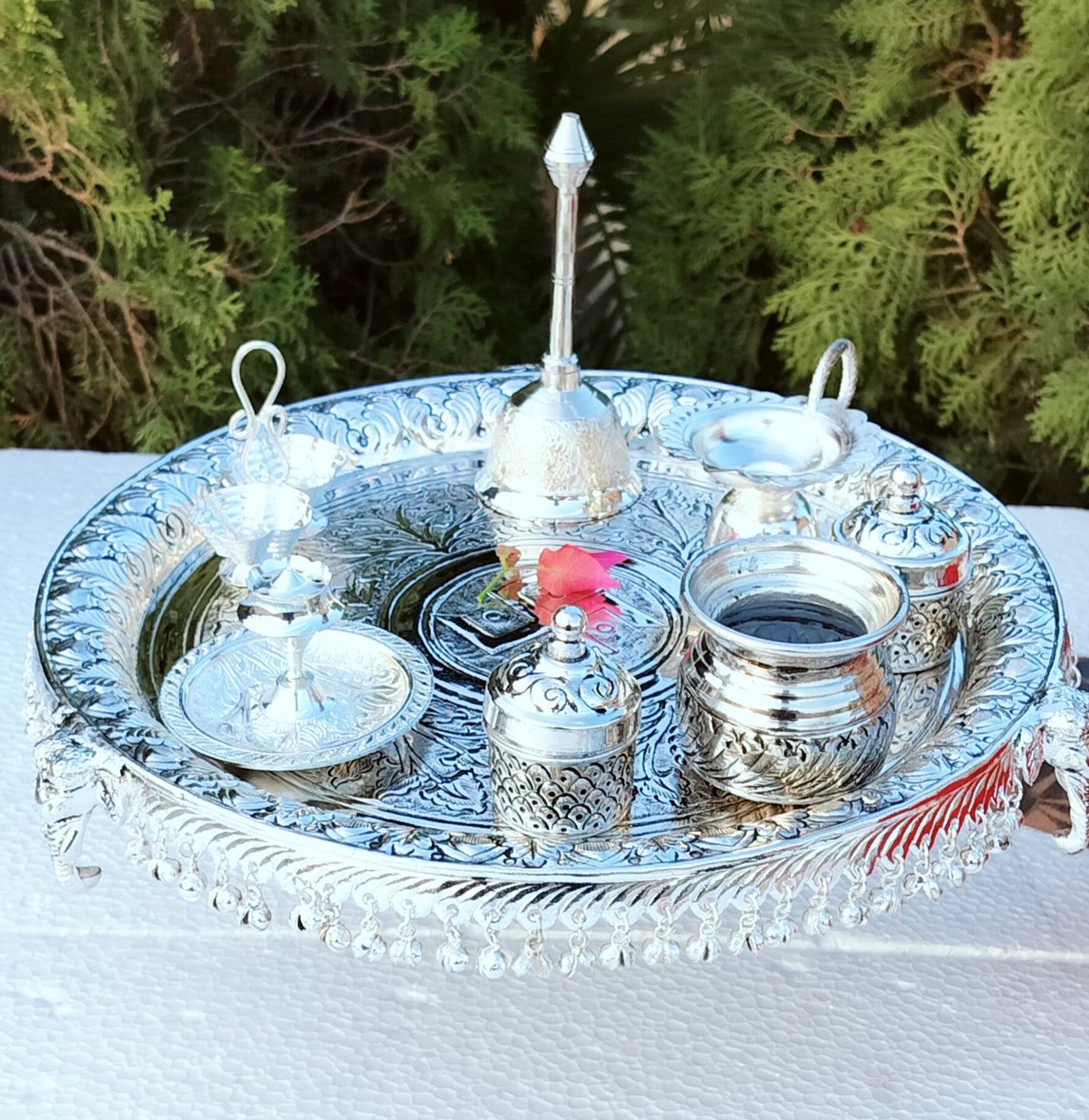 German Silver thali Set for Housewarming Pooja thali/Festival/Gift Item