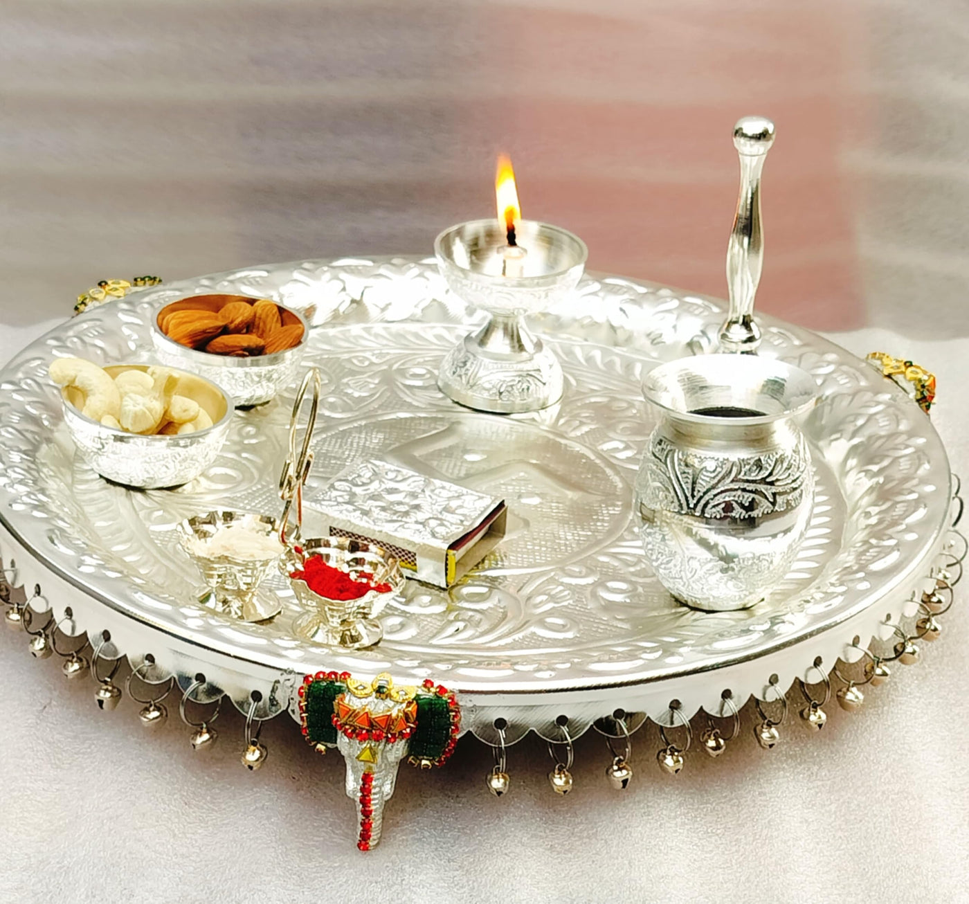 German Silver with Stone Work Big Size 12" inch nakkashi ghungharu thali Set