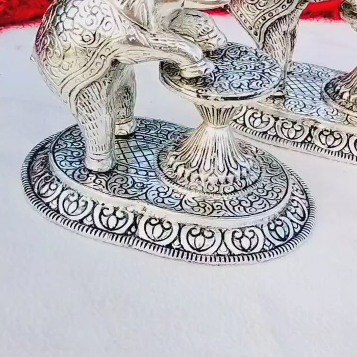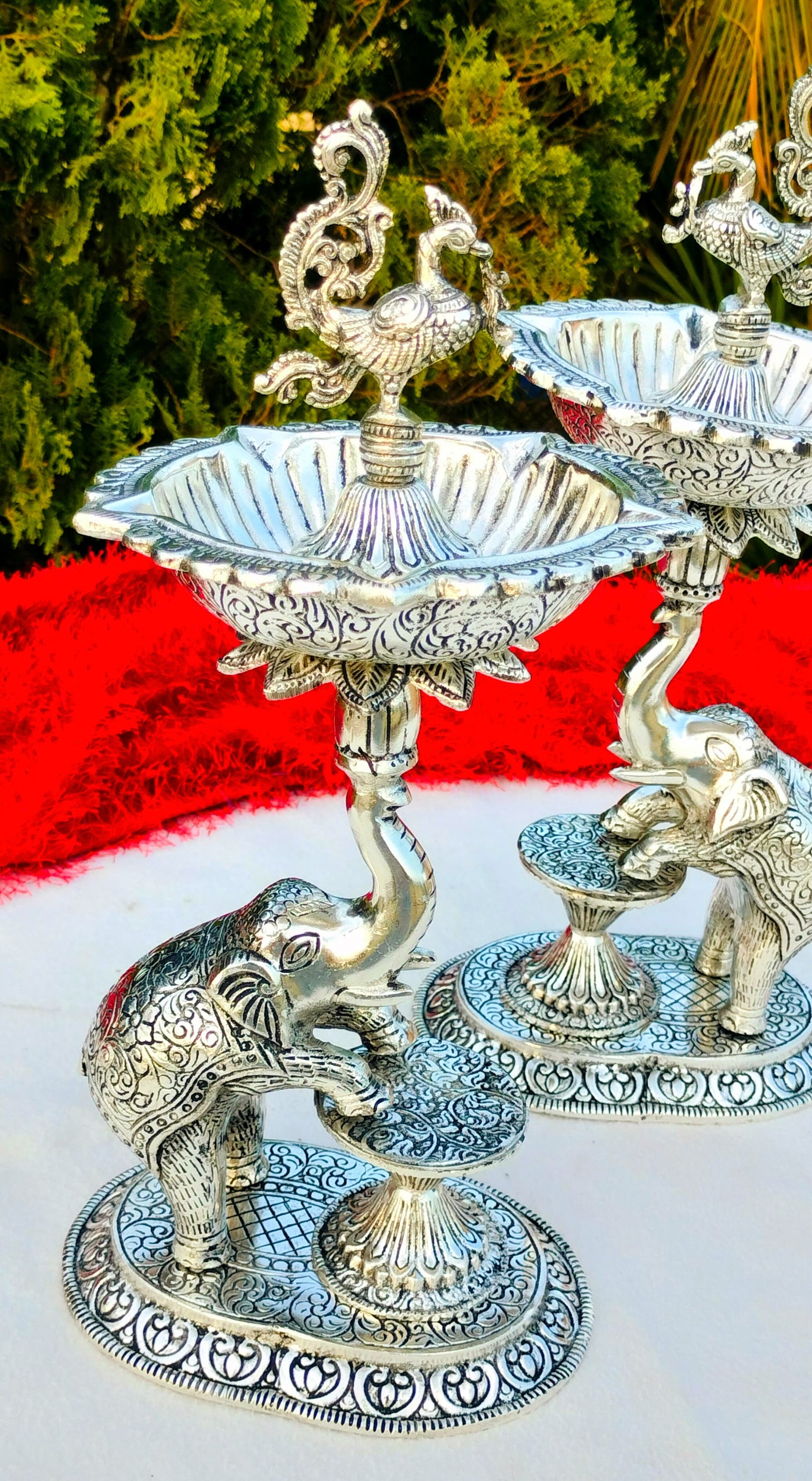 Antique finish German silver big Size 14"-15" inch Elephant diya pair