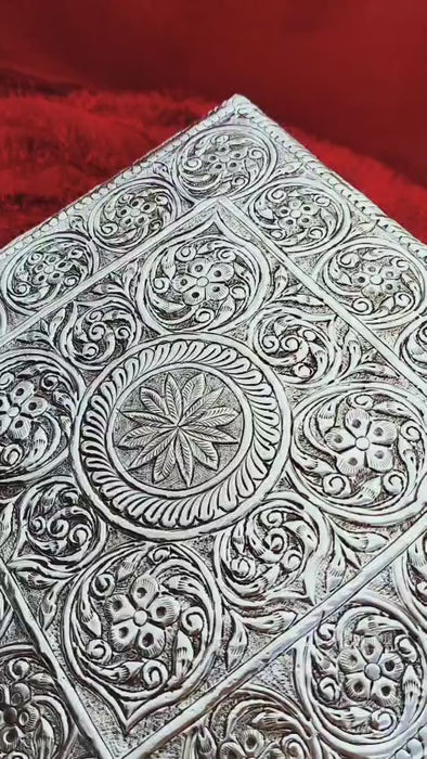 Antique finish German silver square chowki/ singhasan/ stool for housewarming pooja/ diwali