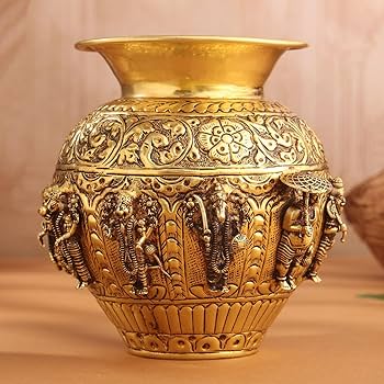 Brass Dashavatara Kalash – Sacred Pot Depicting the Ten Incarnations of Lord Vishnu