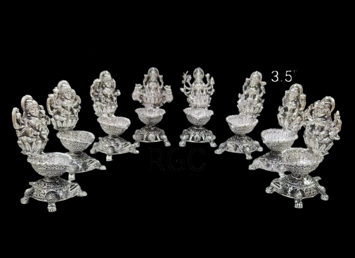 german silver antique finish ashtha lakshmi diya set of 8 pieces for diwali/ housewarming