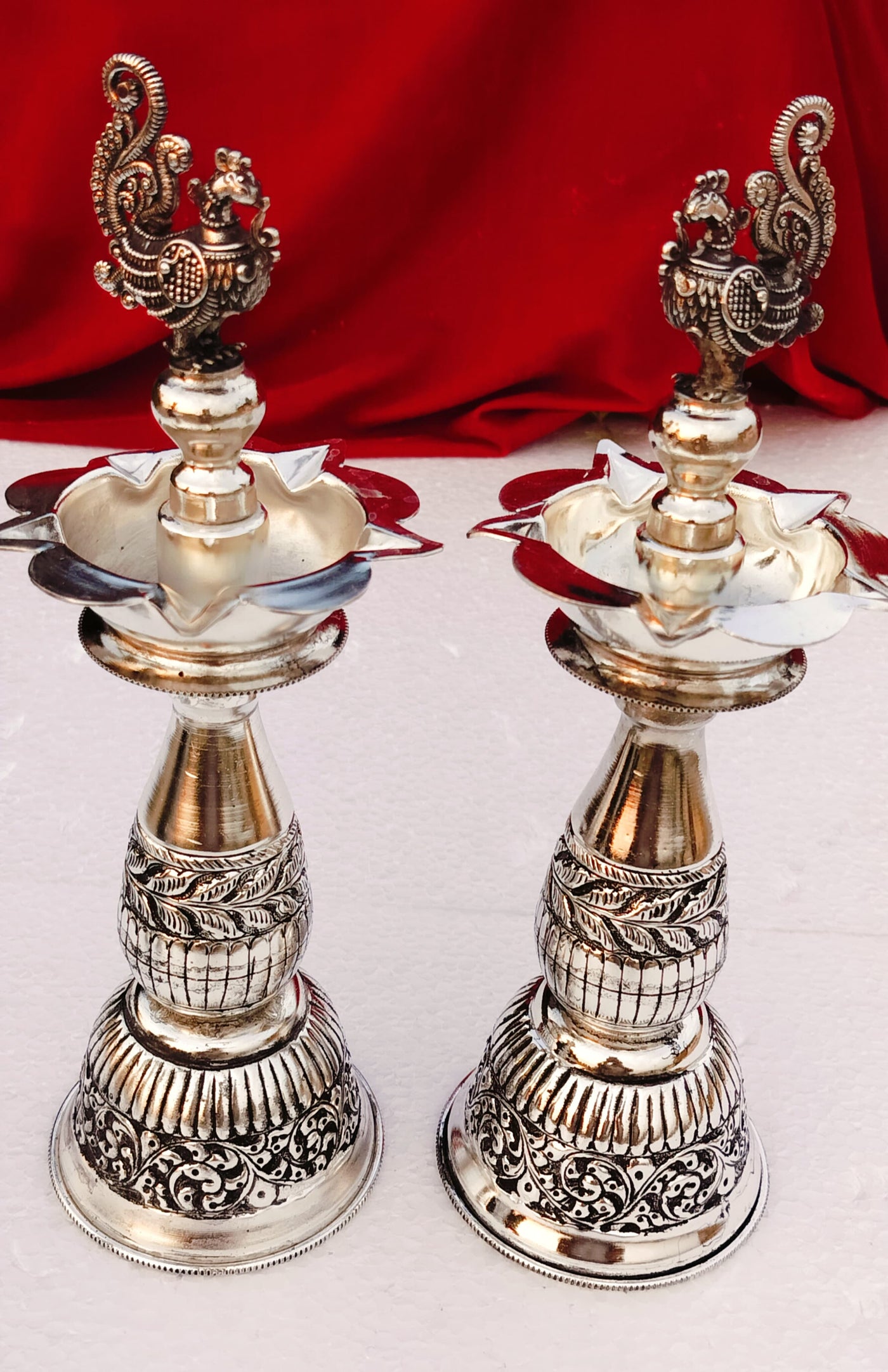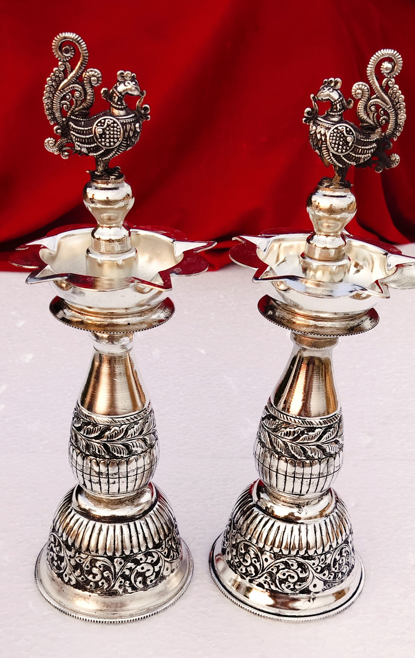german silver antique finish peacock diya for housewarming/ diwali , 12"