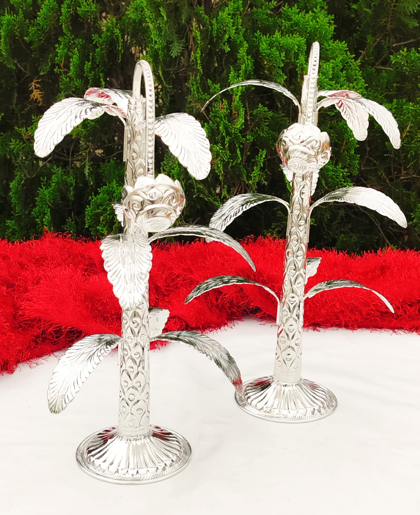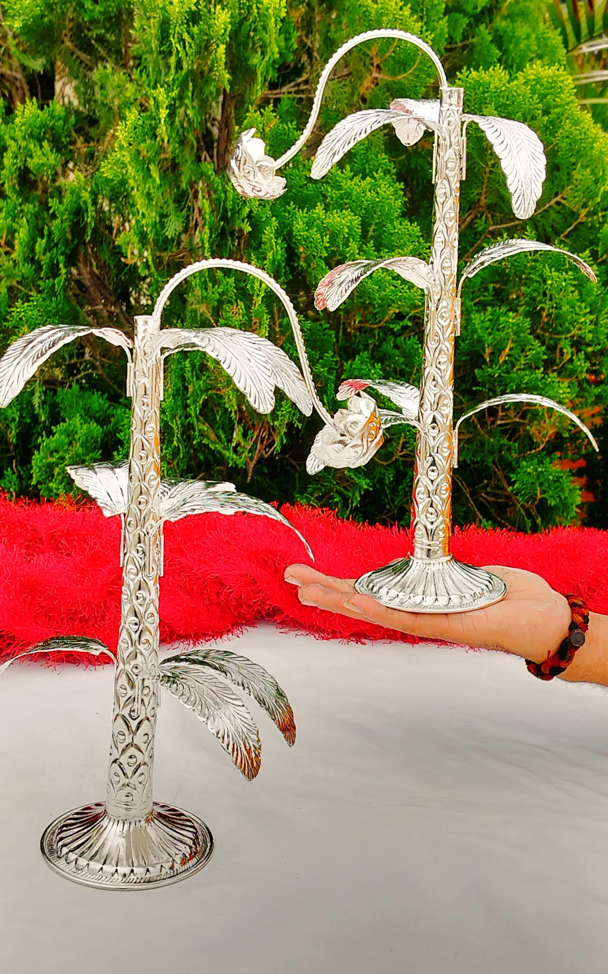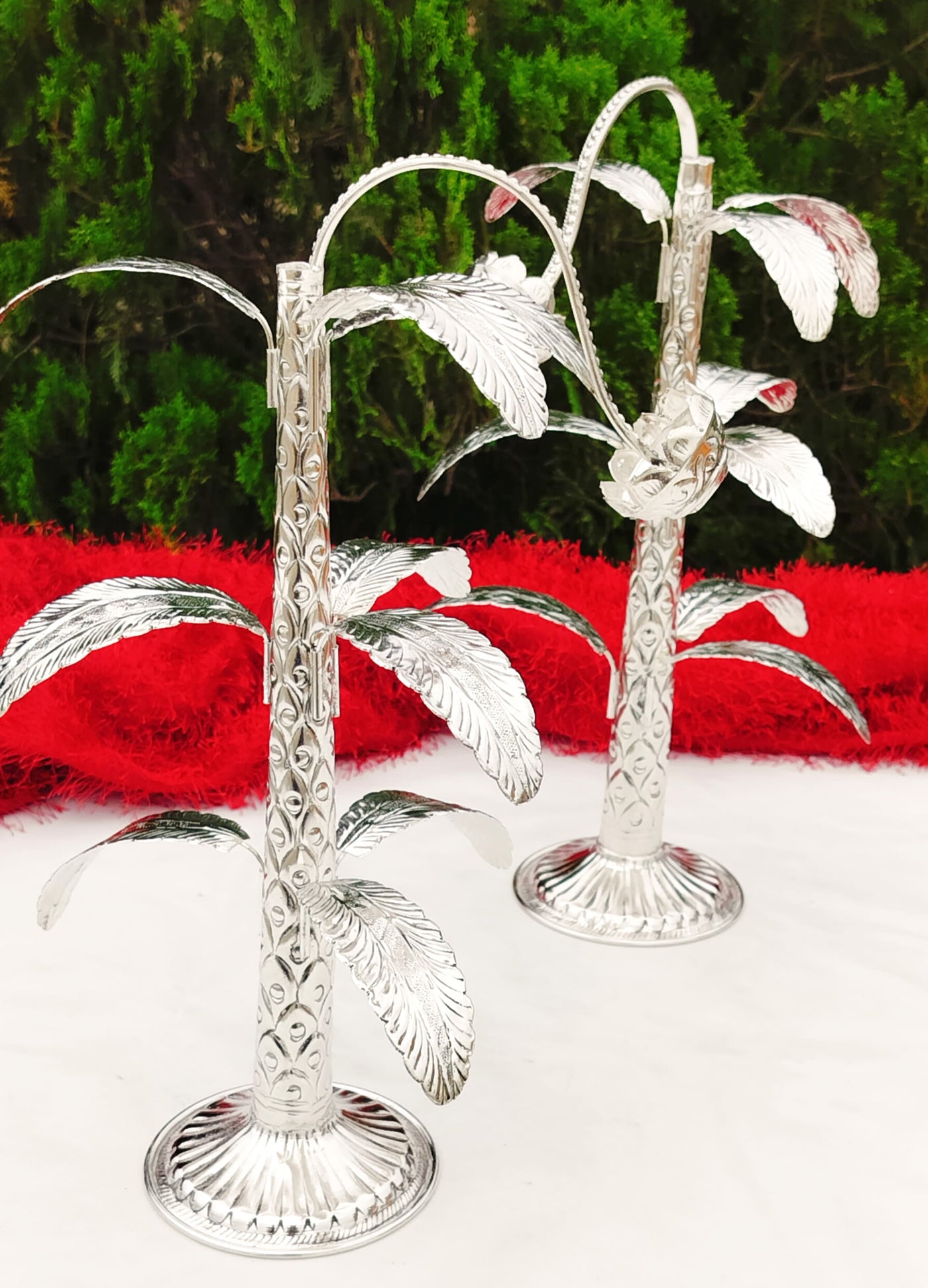 German silver BANANA TREE pair with detachable leaf for housewarming pooja