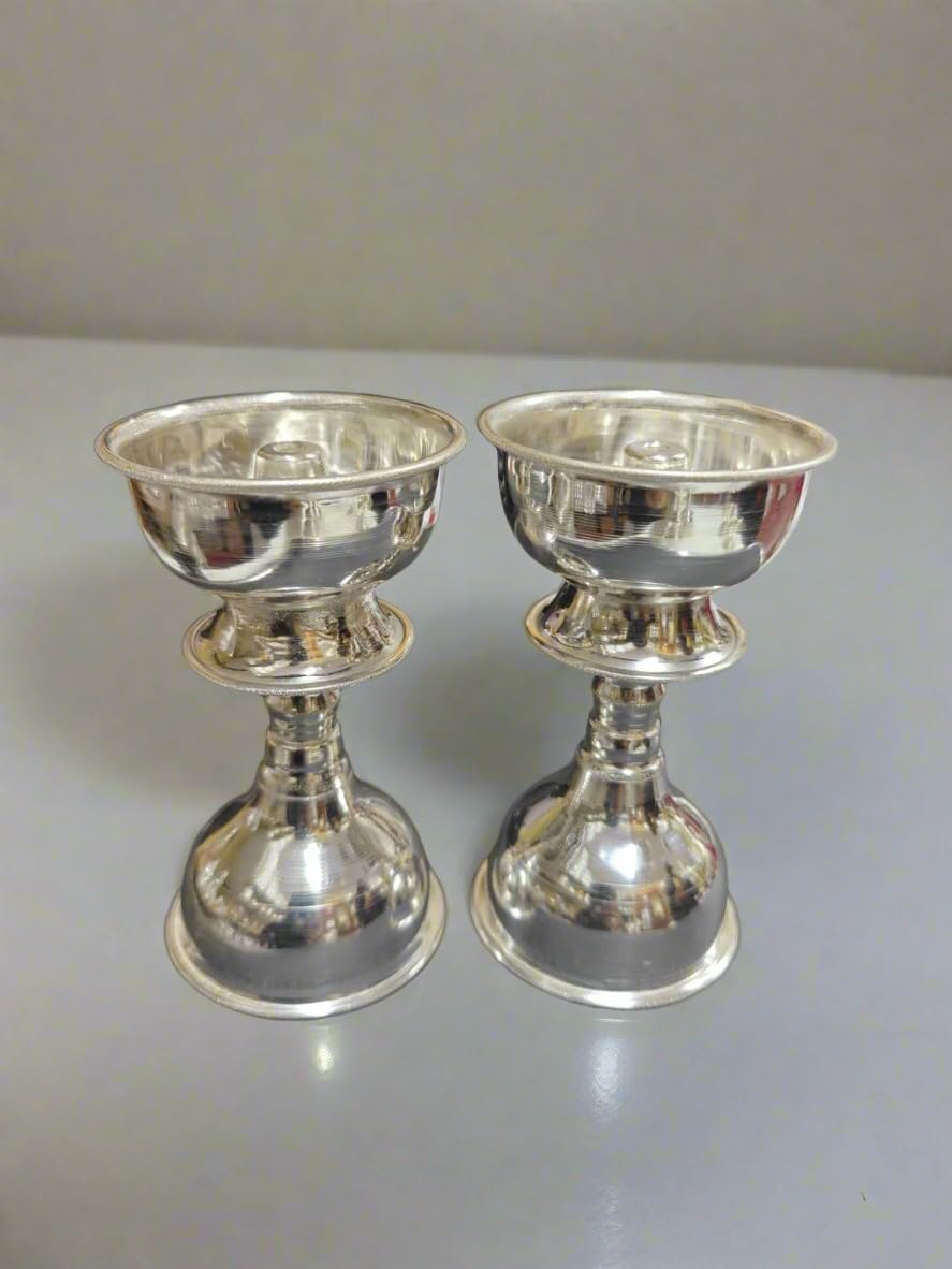 German Silver Diya Pair Set for Housewarming/ Diwali / Gift Item , 6"