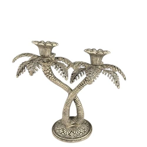 German Silver Double Candle Stand Coconut Tree Design for Home décor/Gift Item, 1 Piece