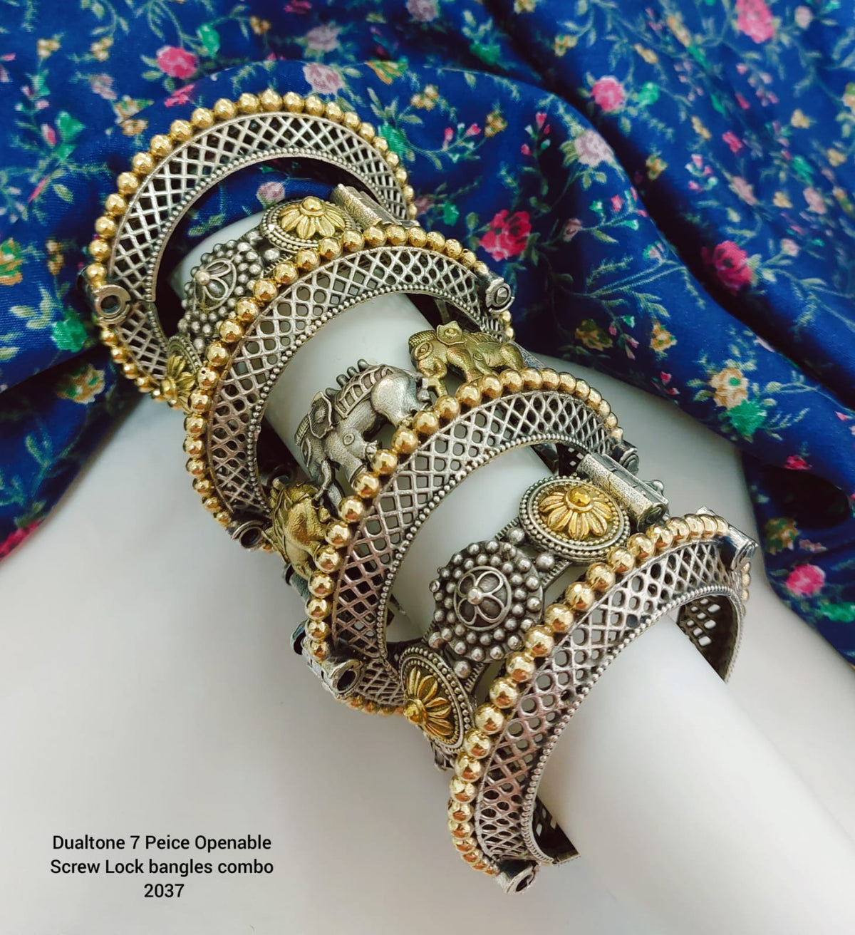 german silver dual tone bangle set of 7 pieces looks good on any women