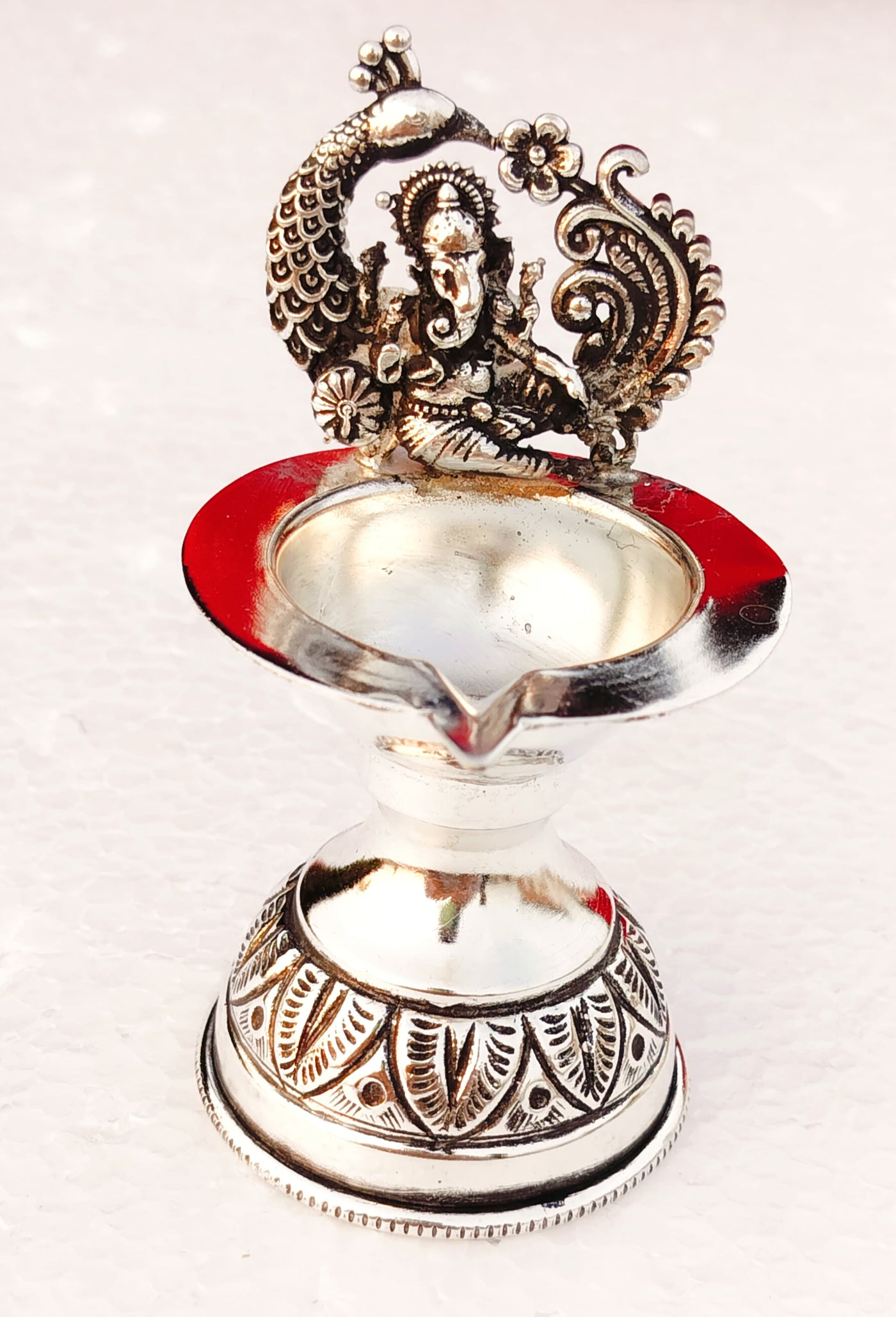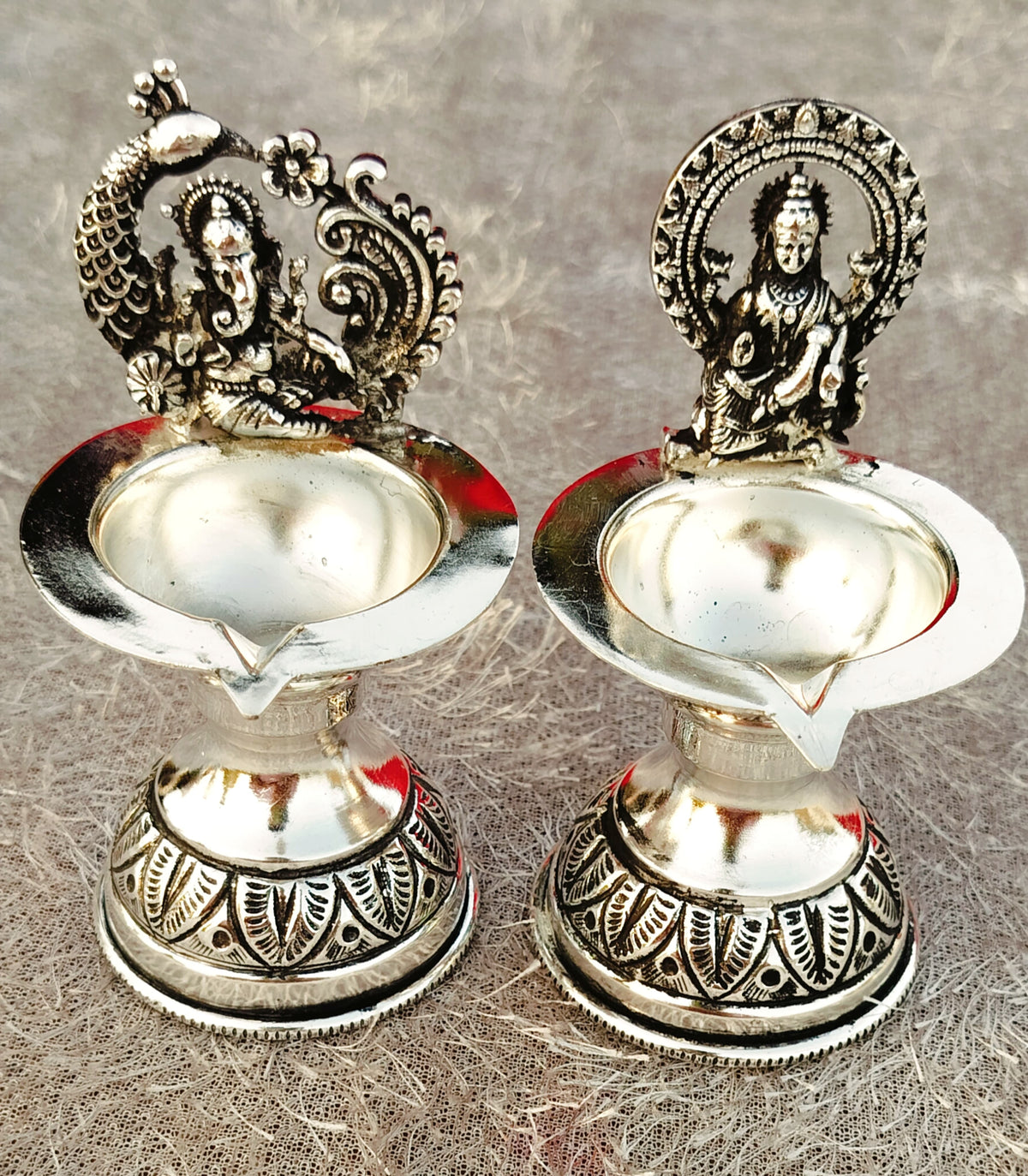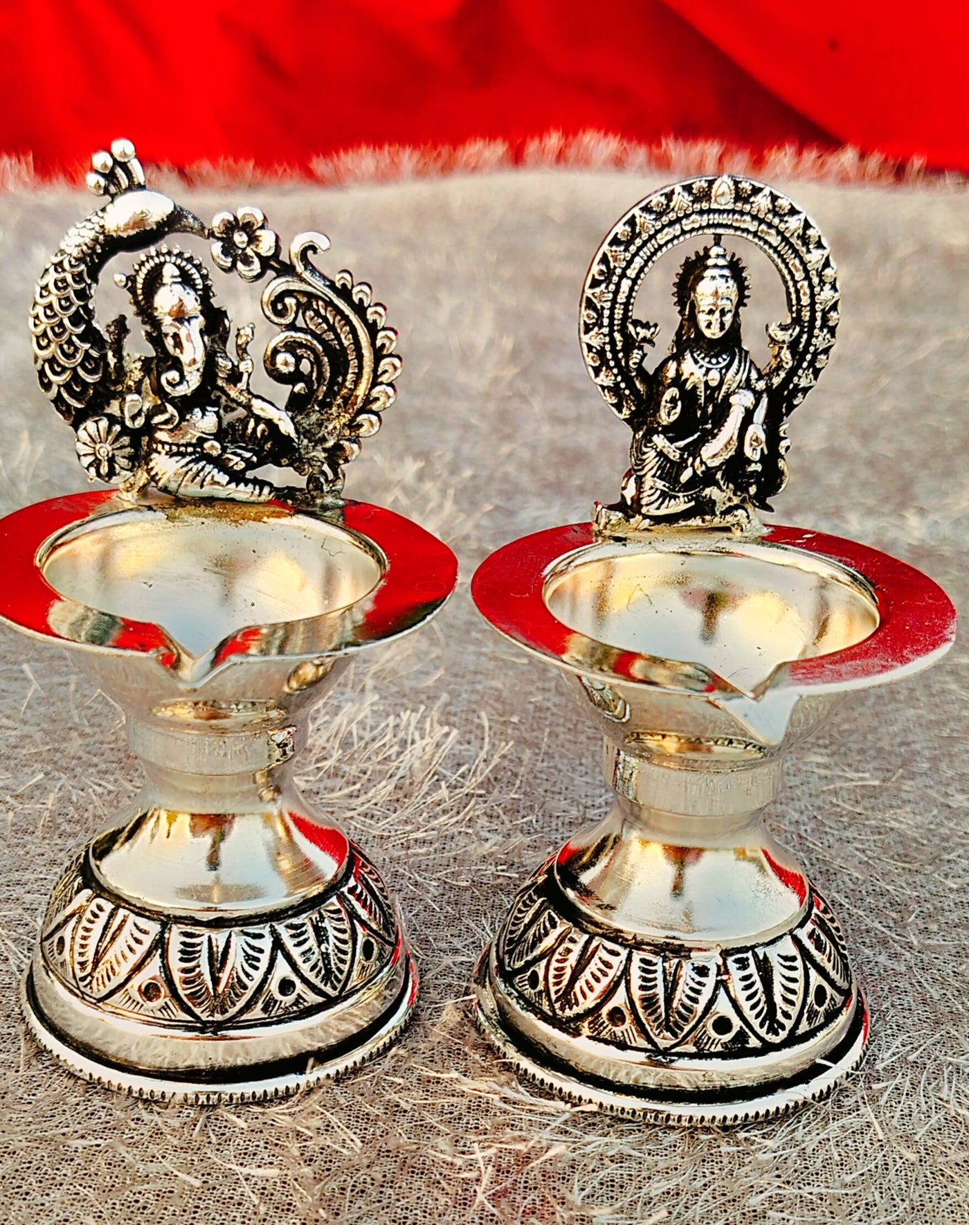 german silver laxmi ganesh diya pair with pure silver antique finish for diwali/ housewarming