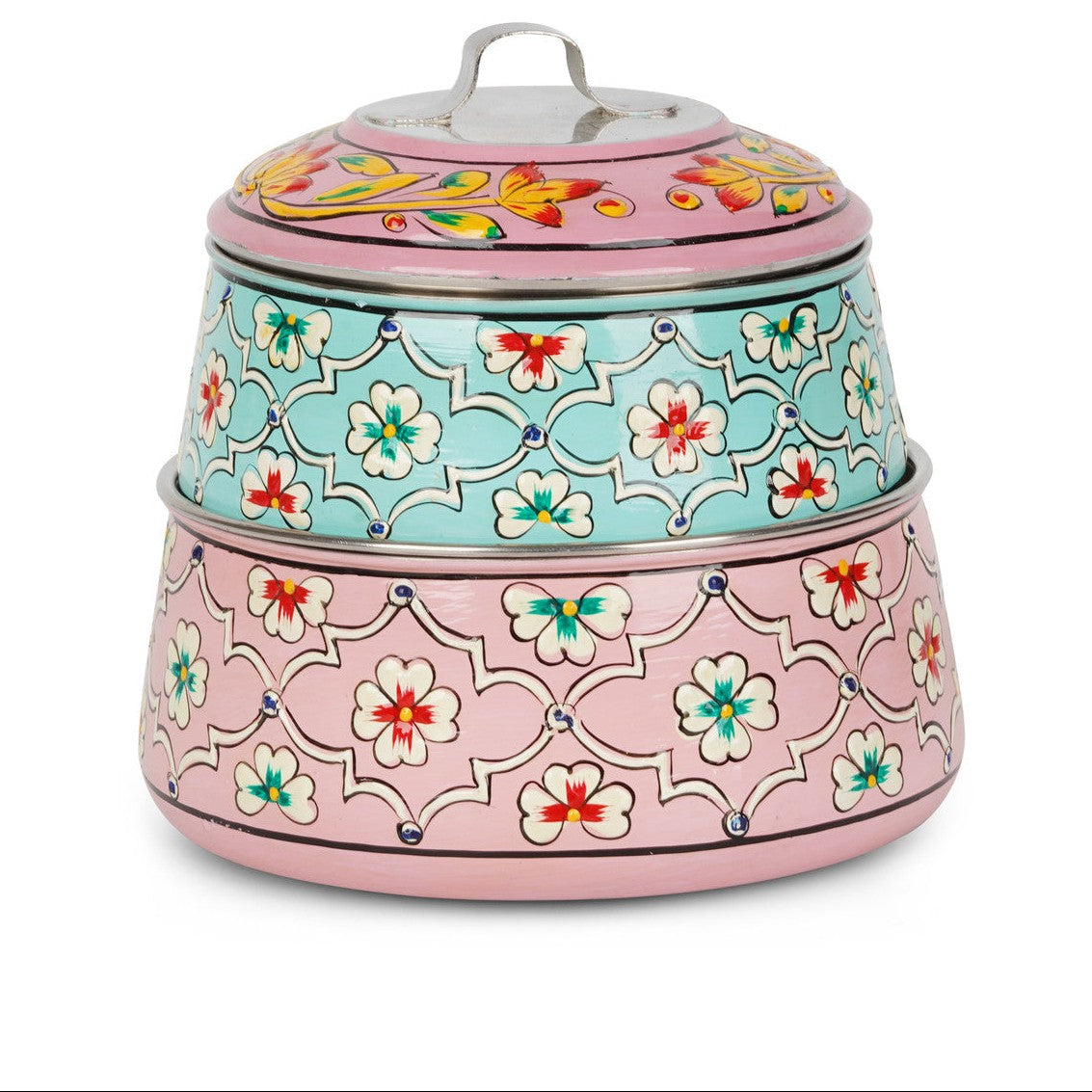 Hand-Painted 2-Tier Stainless Steel Lunch Box – pink Floral Design Eco-Friendly & Artistic Food Carrier