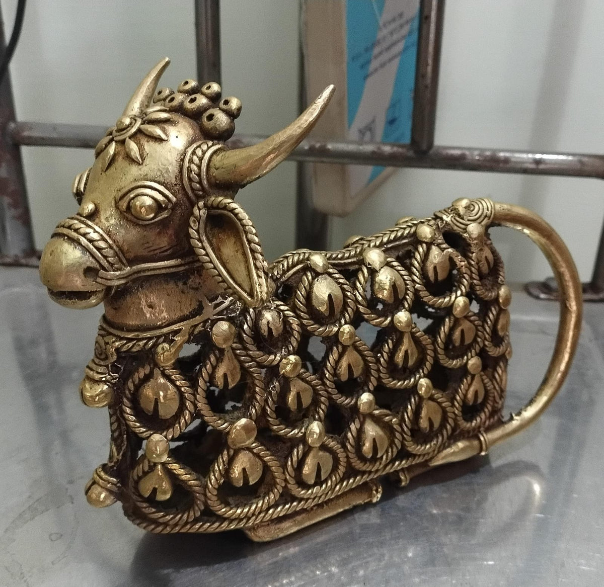 Handcrafted Brass Nandi Sitting Statue – Traditional Home Décor & Spiritual Blessings