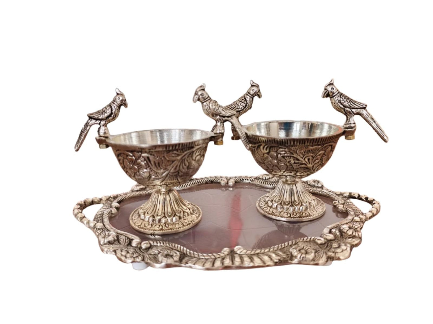 indiancraftbykanika German Silver Tray with 2 Parrot Bowls for Serving Snacks,Sweets, Gift Item