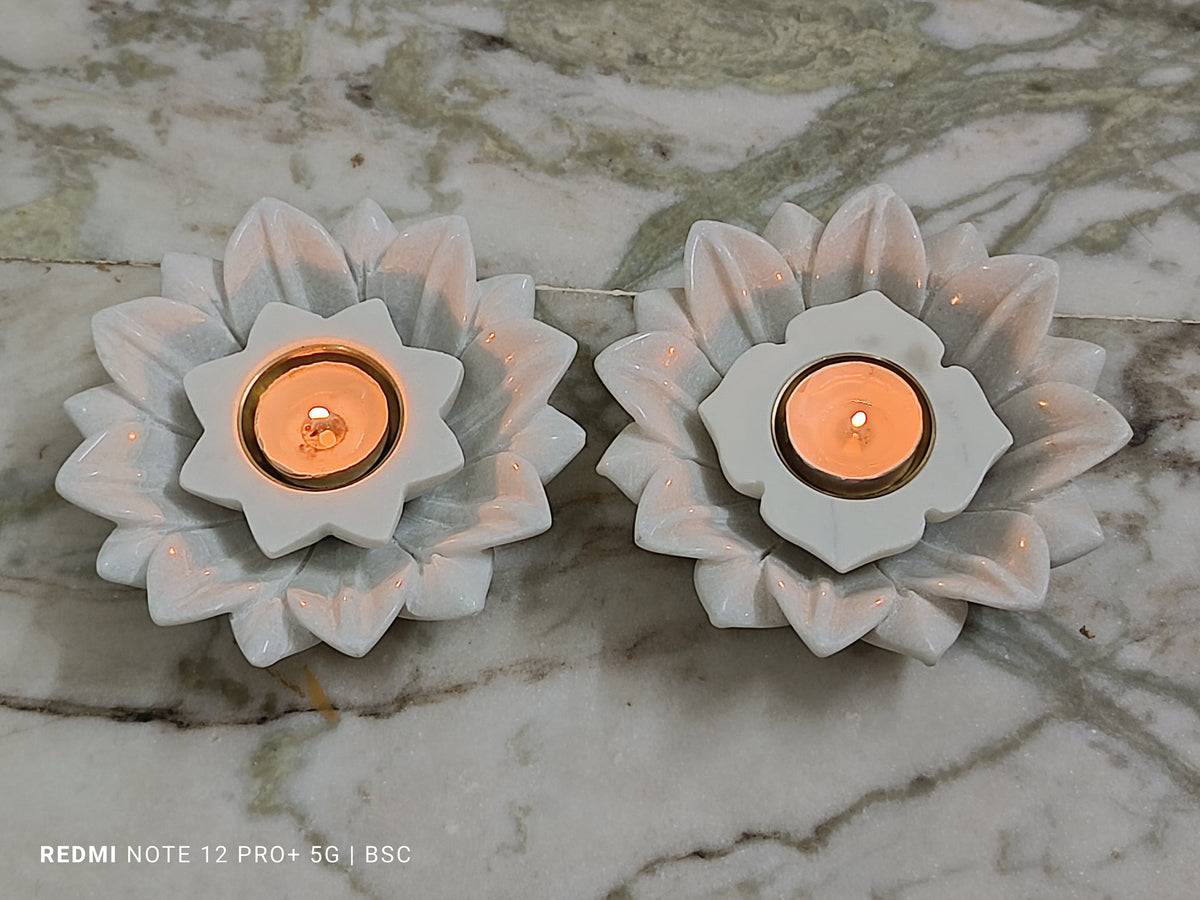 marble lotus urli with star diya/tea light holder for home décor