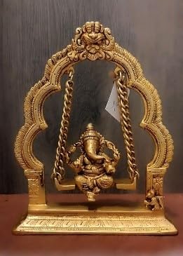 indiancraftsbykanika Brass Golden Ganesh on jhula Statue for Home Decor/Gift Item/Temple