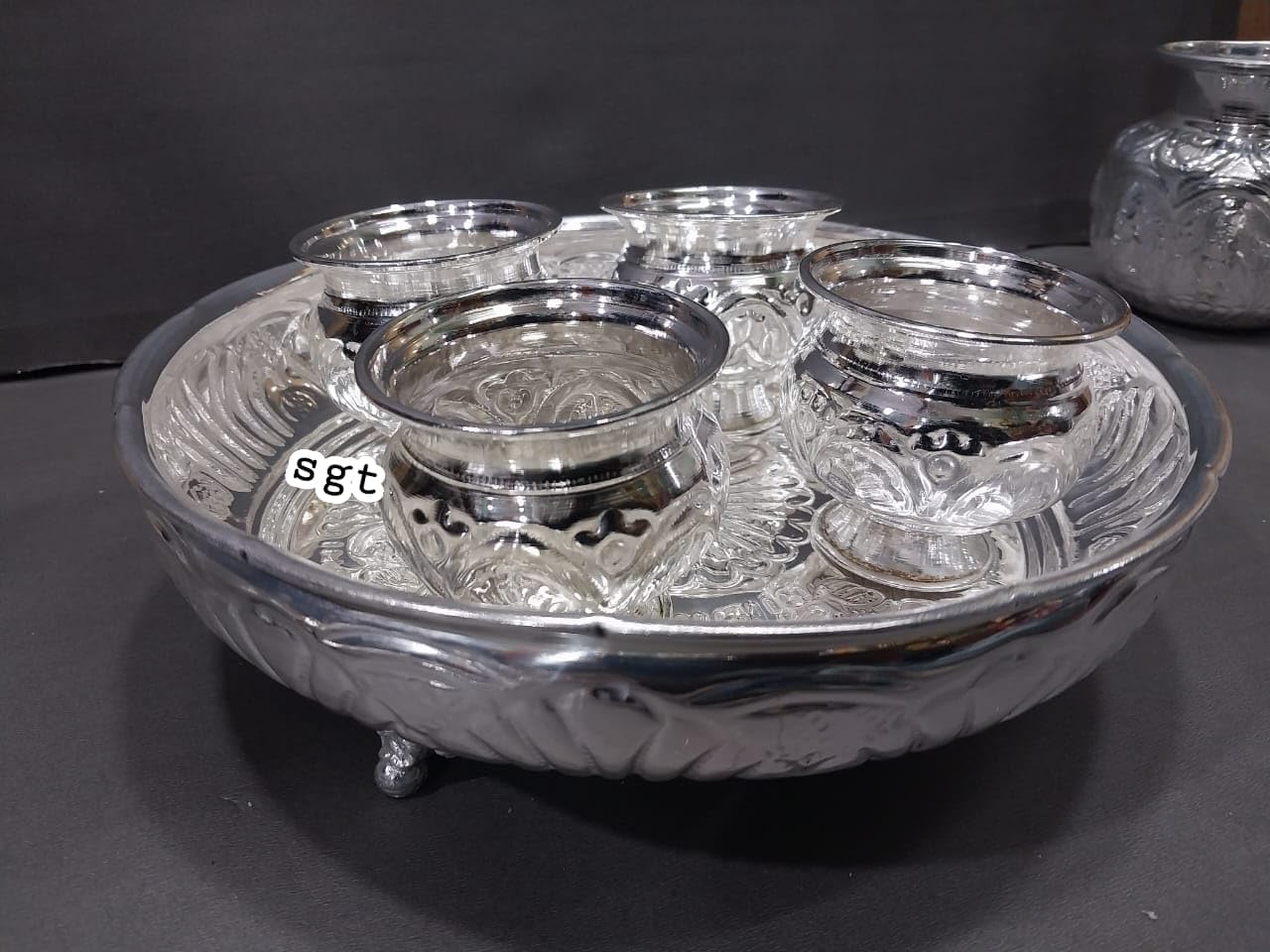 indiancraftsbykanika German silver dessert tray set with bowls for snacks/gift item/gift item